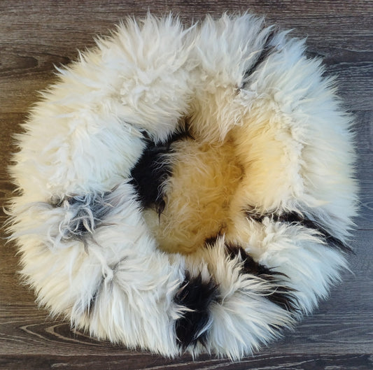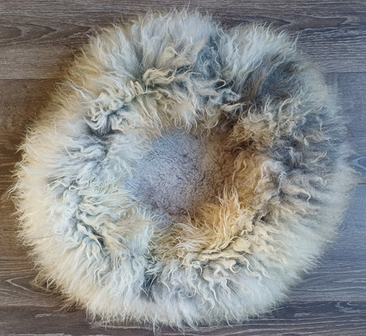 Iedere mand is uniek. Elke mand zal dan ook verschillen in structuur en bijv dikte. Dit kunt u merken aan de bodem die bij de ene vacht dikker is dan de andere. Ook kan de mand kleiner ogen door langere haren. Het blijft een natuurproduct.
