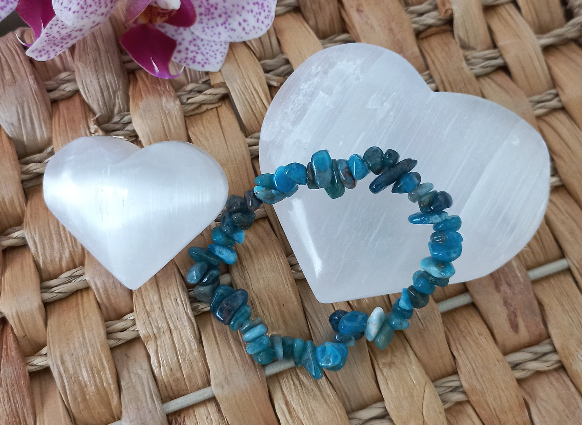 Mooie splitarmband van Blauwe Apatiet uit China. Deze splitarmband wordt bij elkaar gehouden door een stevig dubbel elastiek.
