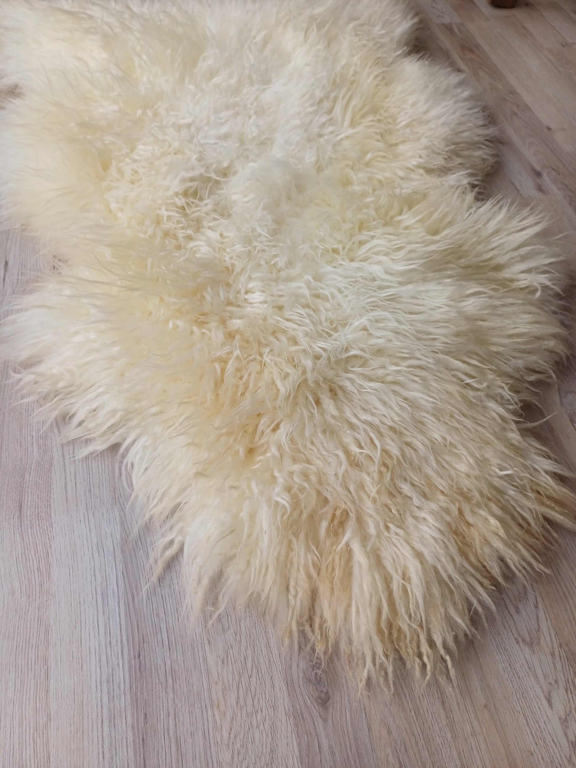 Leuk weetje is dat daaraan ook te zien is dat het een echte schapenvacht betreft. Namaak vachten verkleuren namelijk niet bij een andere lichtinval.