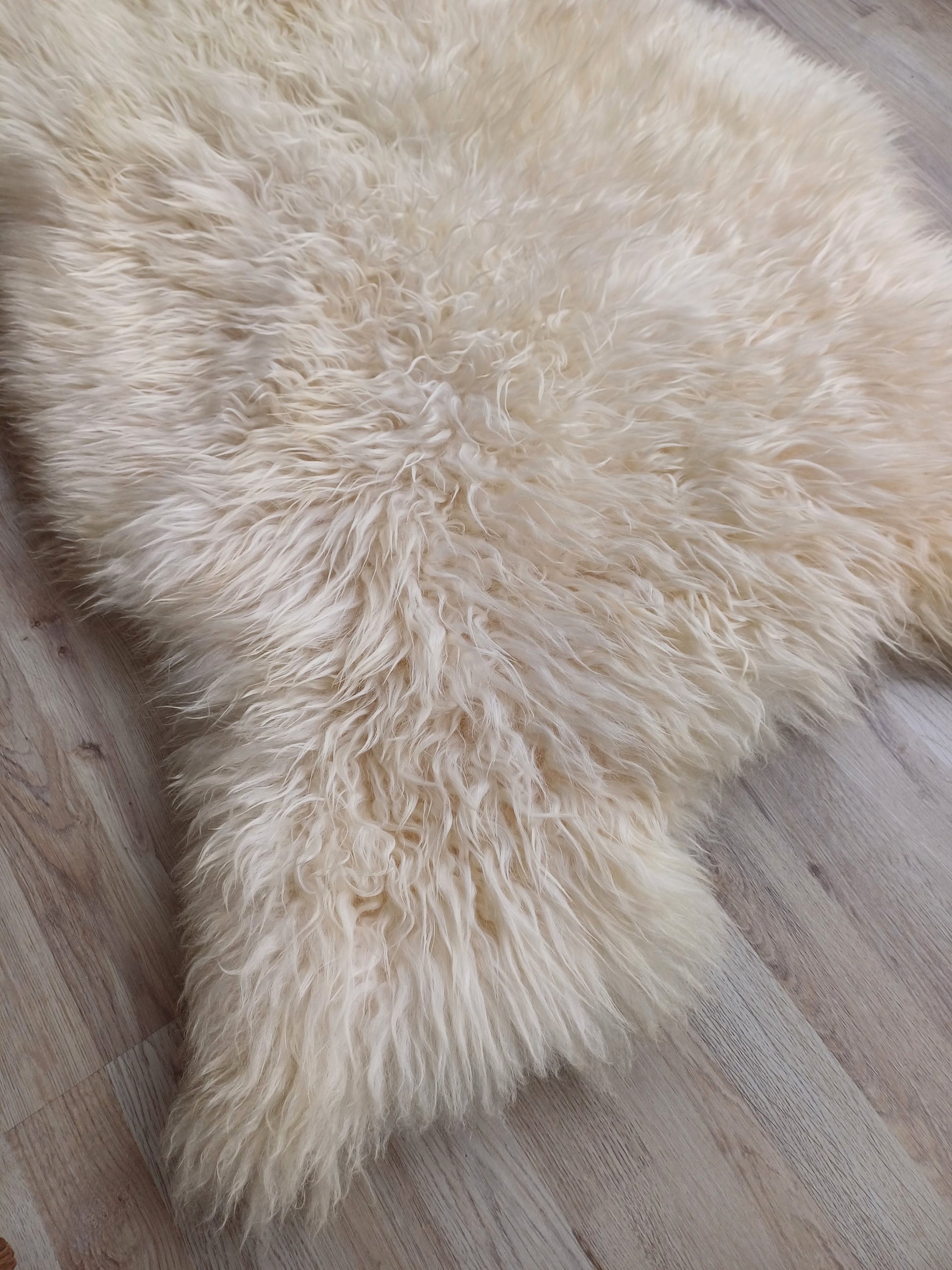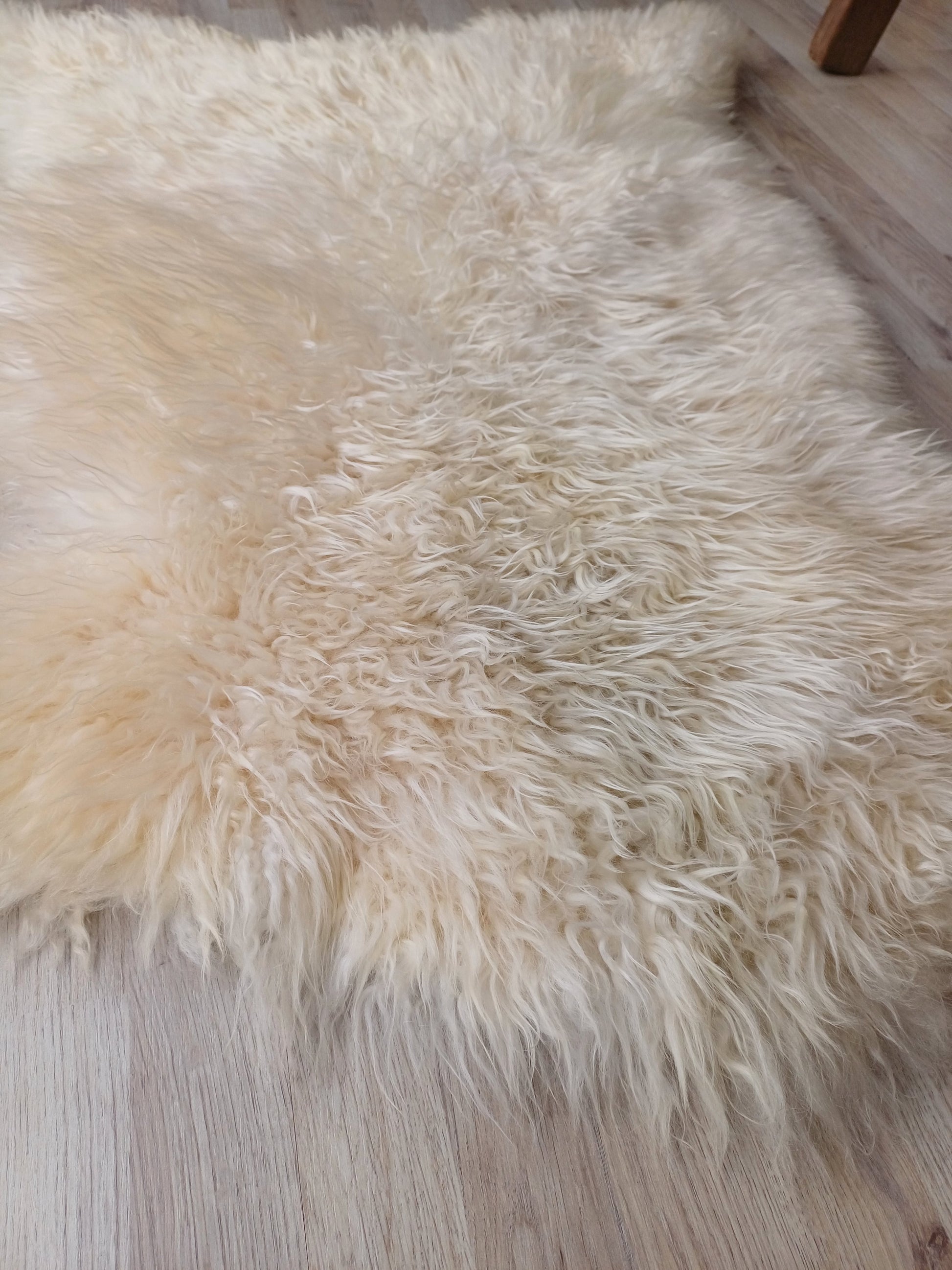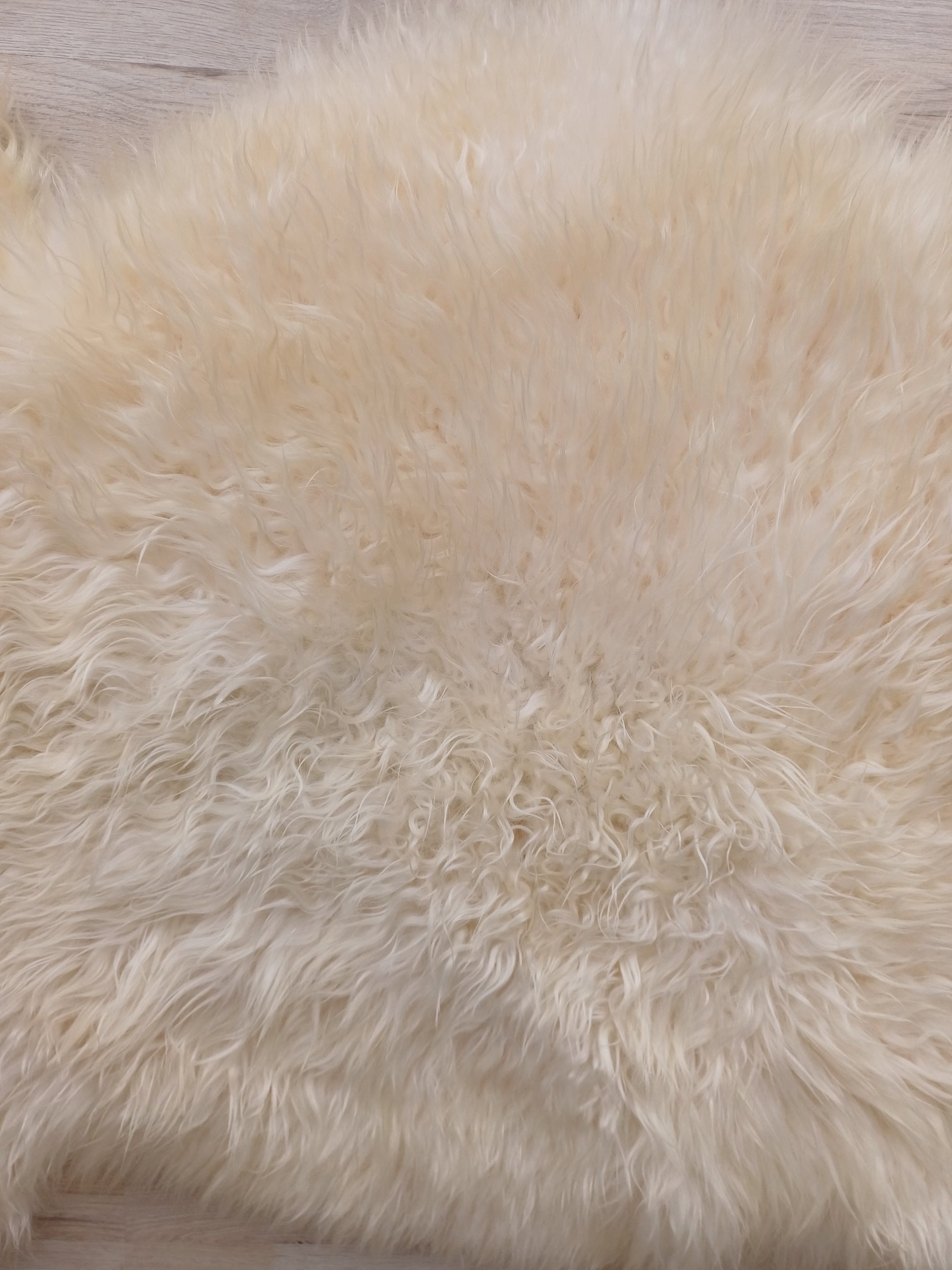 Leuk weetje is dat daaraan ook te zien is dat het een echte schapenvacht betreft. Namaak vachten verkleuren namelijk niet bij een andere lichtinval.