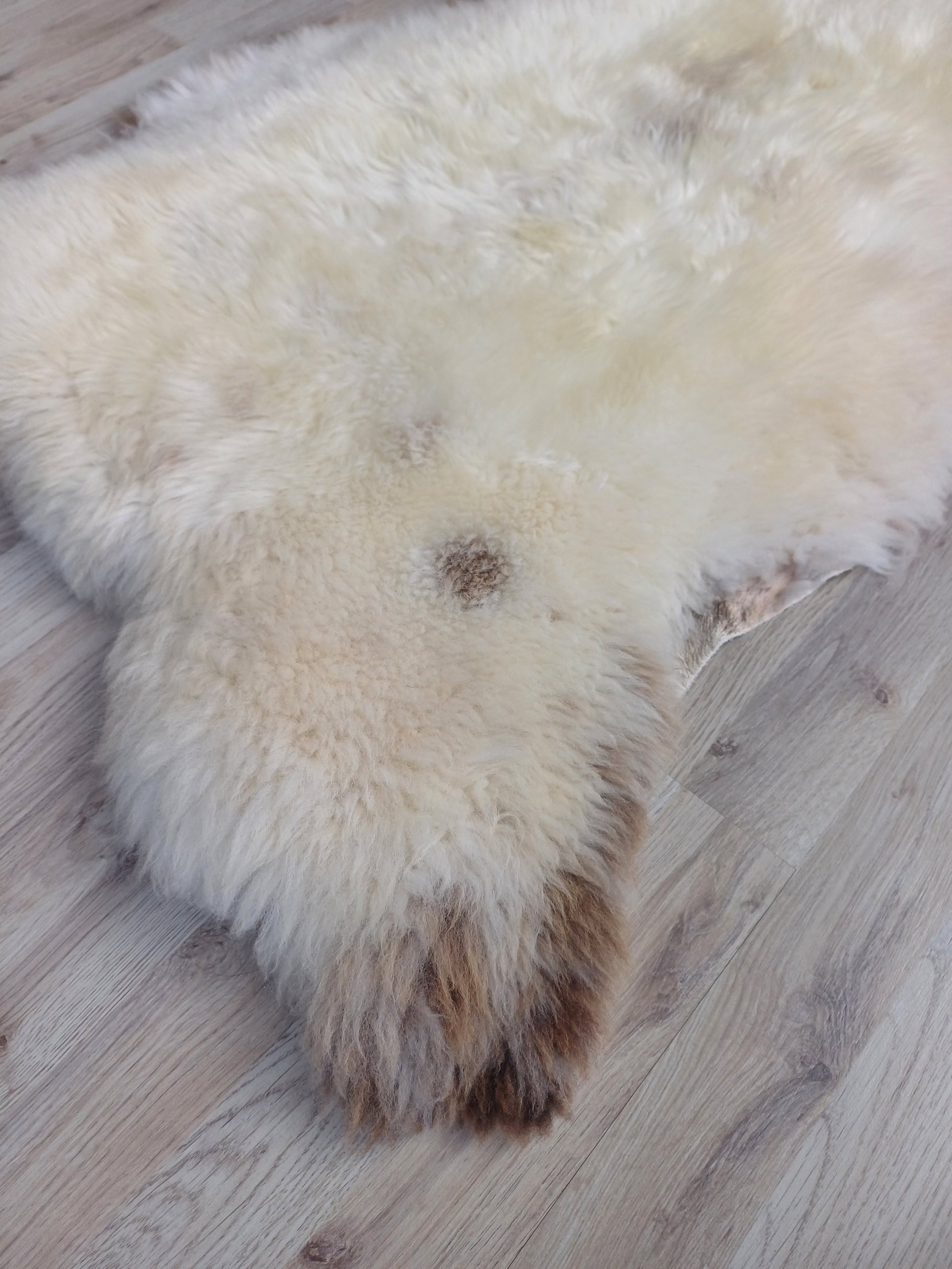 Leuk weetje is dat daaraan ook te zien is dat het een echte schapenvacht betreft. Namaak vachten verkleuren namelijk niet bij een andere lichtinval.