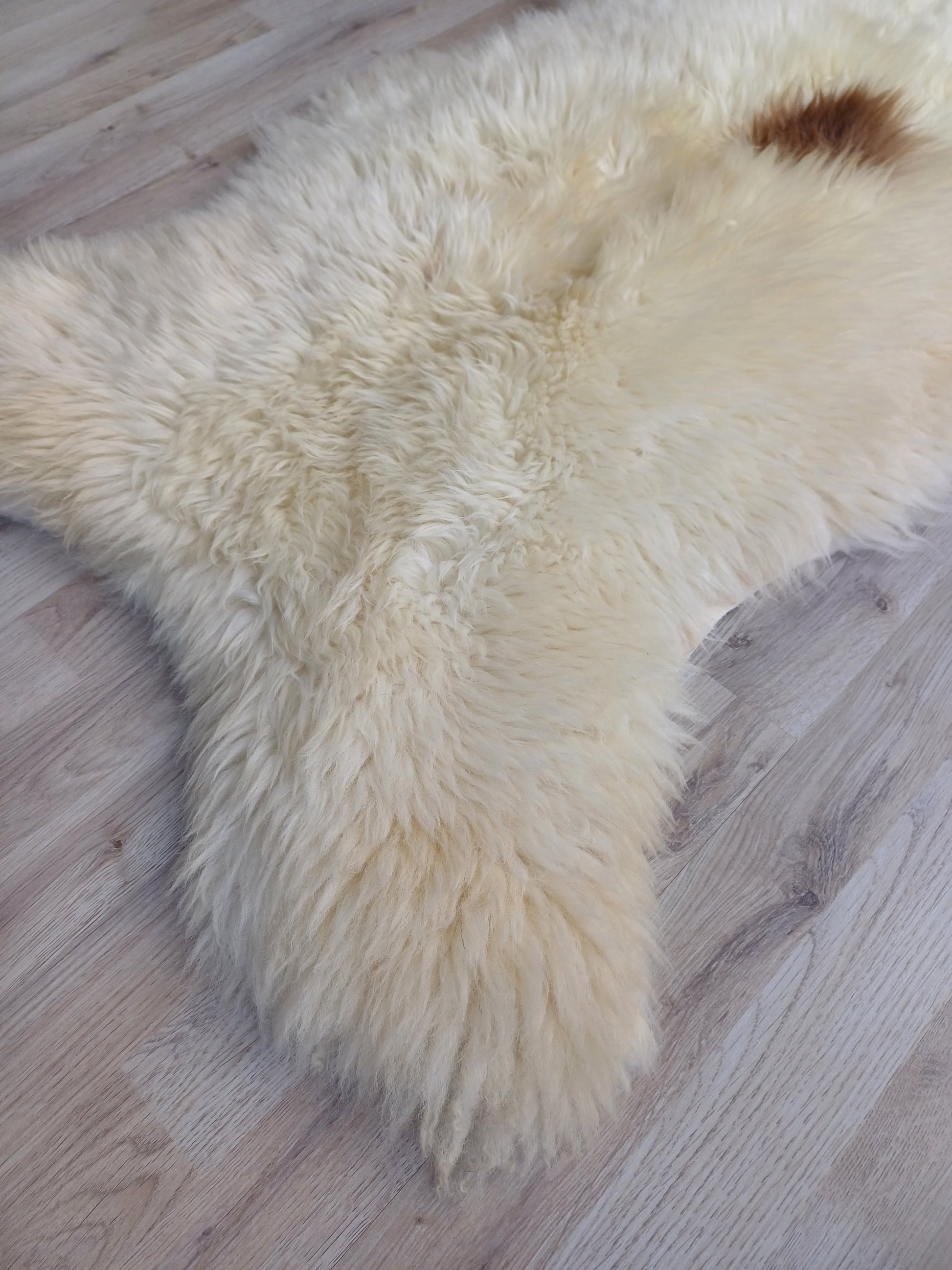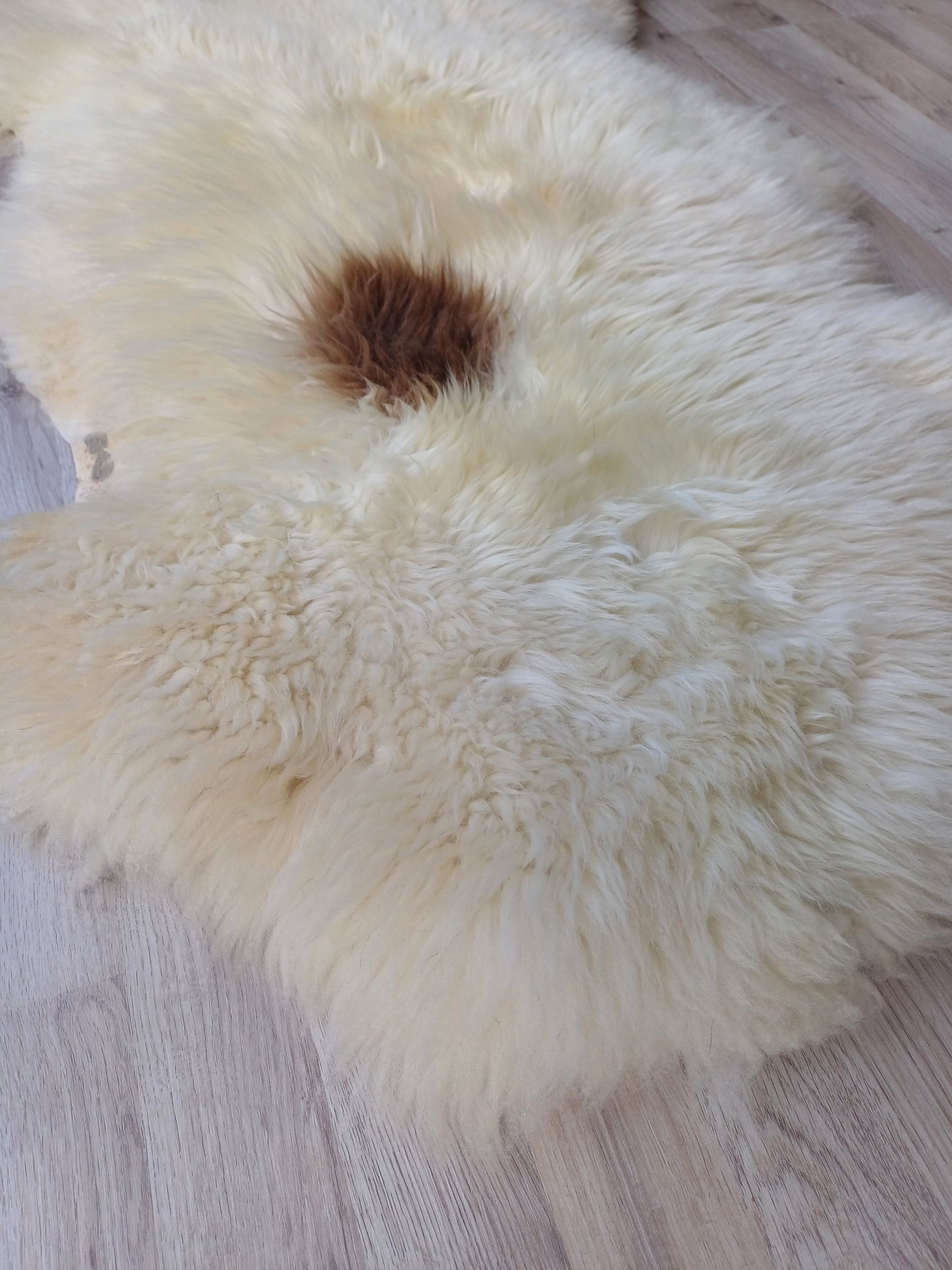 Leuk weetje is dat daaraan ook te zien is dat het een echte schapenvacht betreft. Namaak vachten verkleuren namelijk niet bij een andere lichtinval.