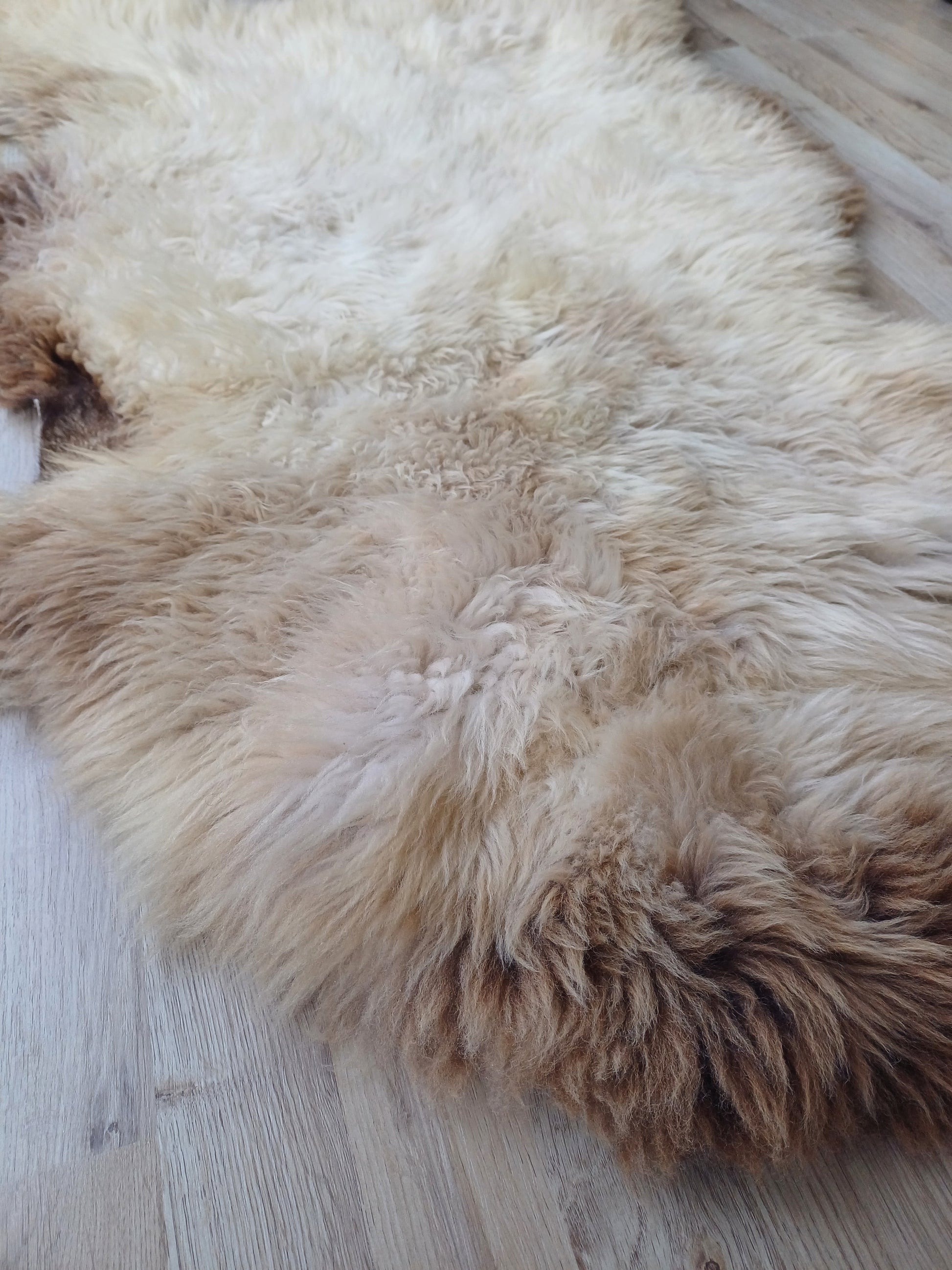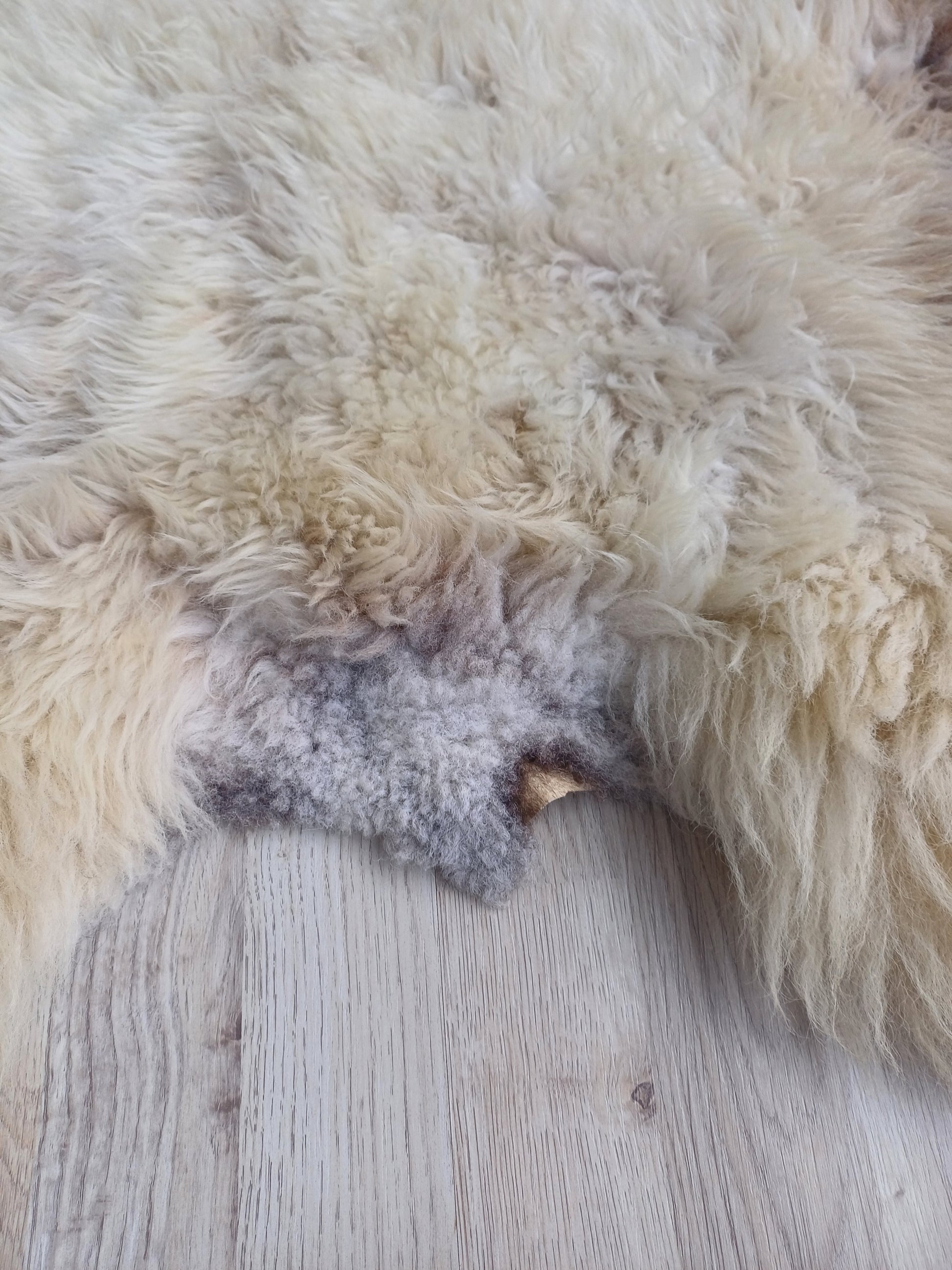 Leuk weetje is dat daaraan ook te zien is dat het een echte schapenvacht betreft. Namaak vachten verkleuren namelijk niet bij een andere lichtinval.