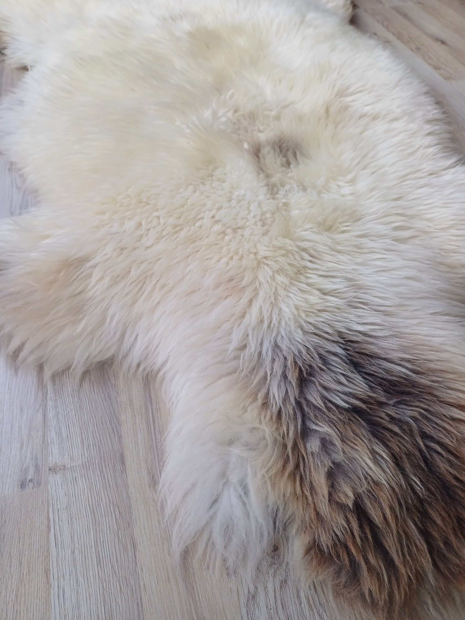 Leuk weetje is dat daaraan ook te zien is dat het een echte schapenvacht betreft. Namaak vachten verkleuren namelijk niet bij een andere lichtinval.