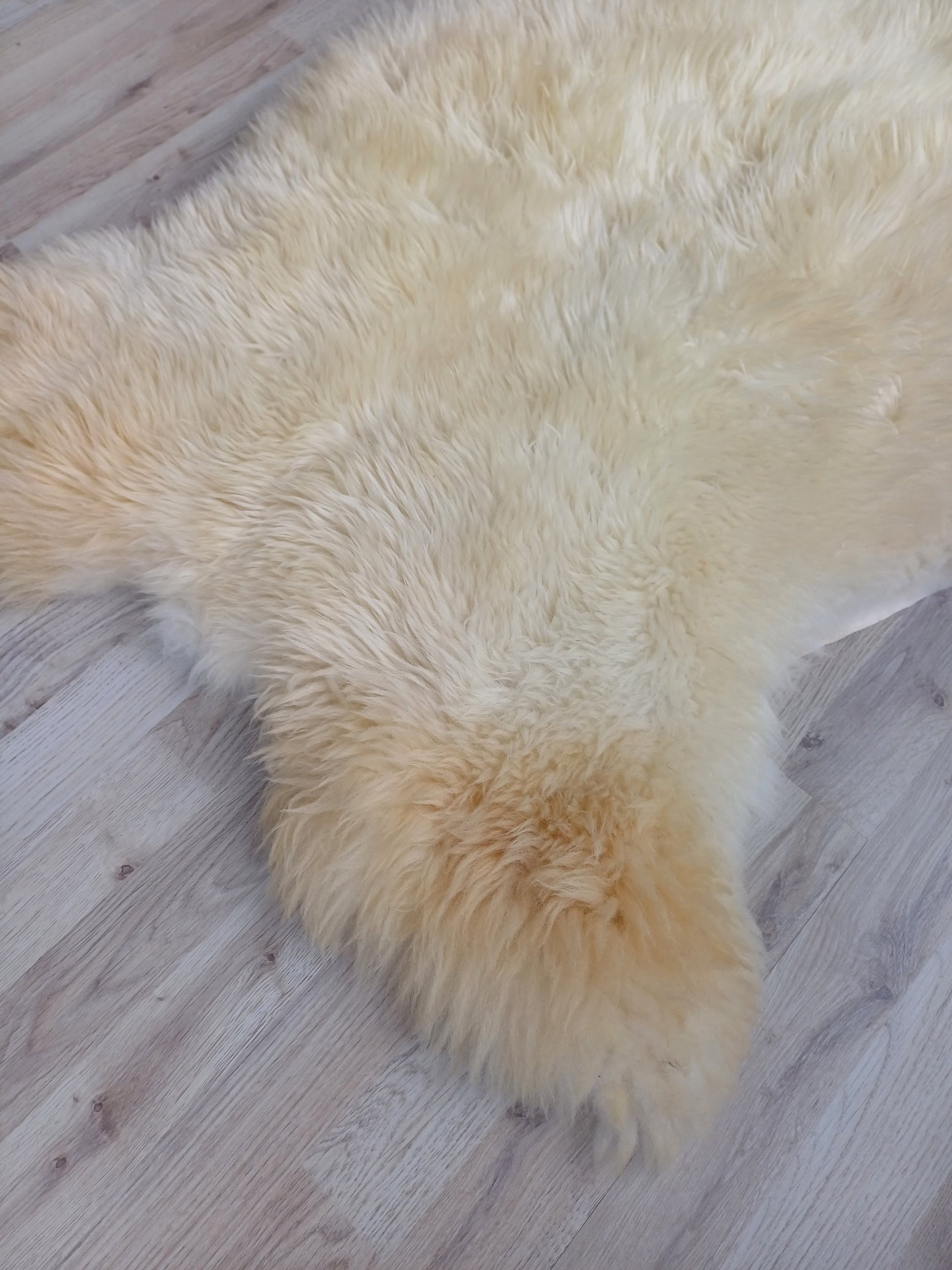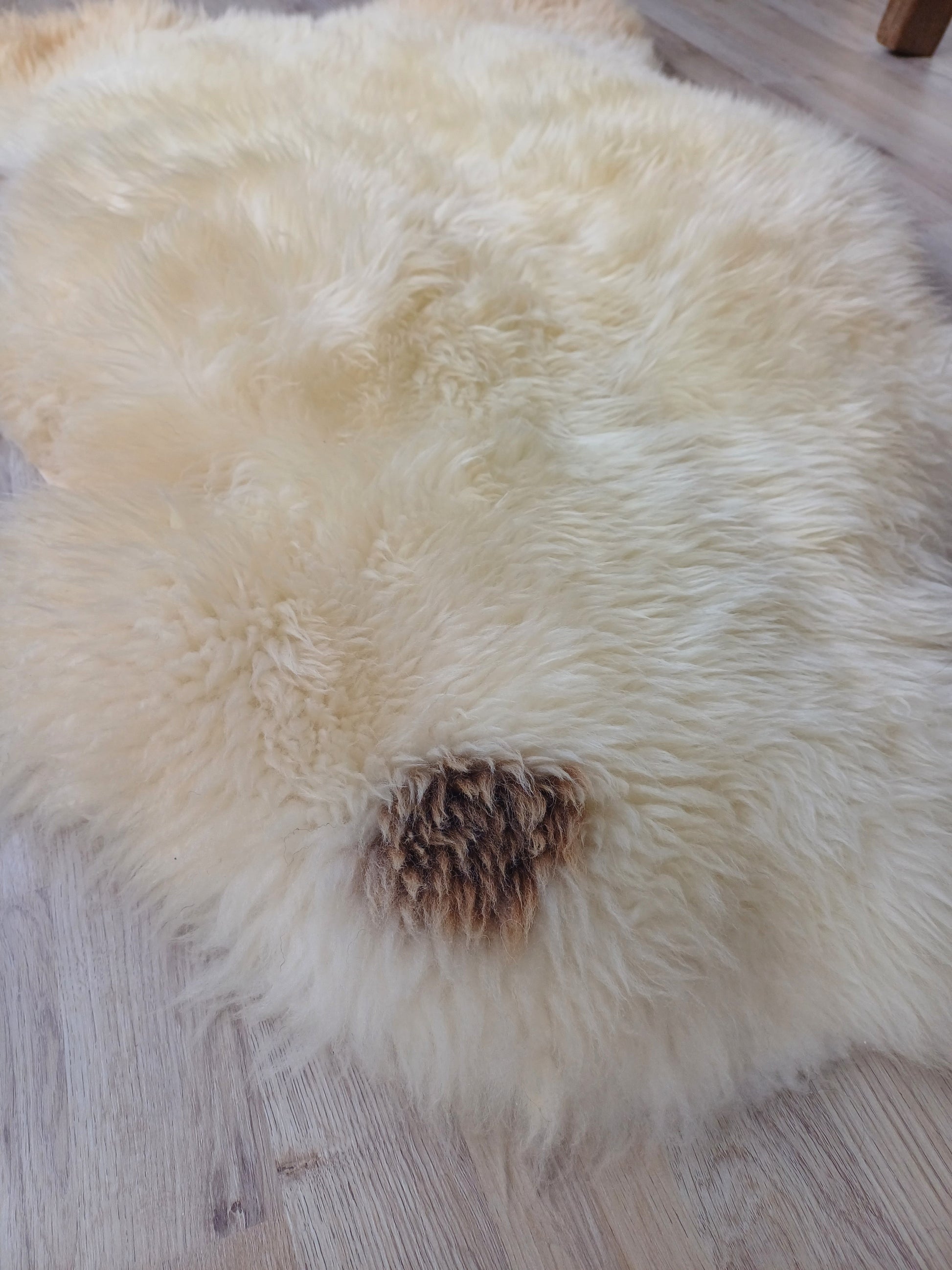 Leuk weetje is dat daaraan ook te zien is dat het een echte schapenvacht betreft. Namaak vachten verkleuren namelijk niet bij een andere lichtinval.