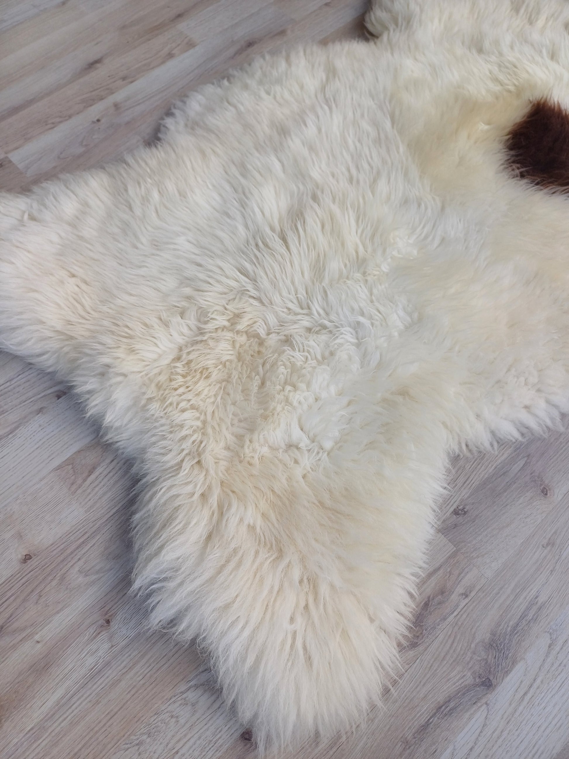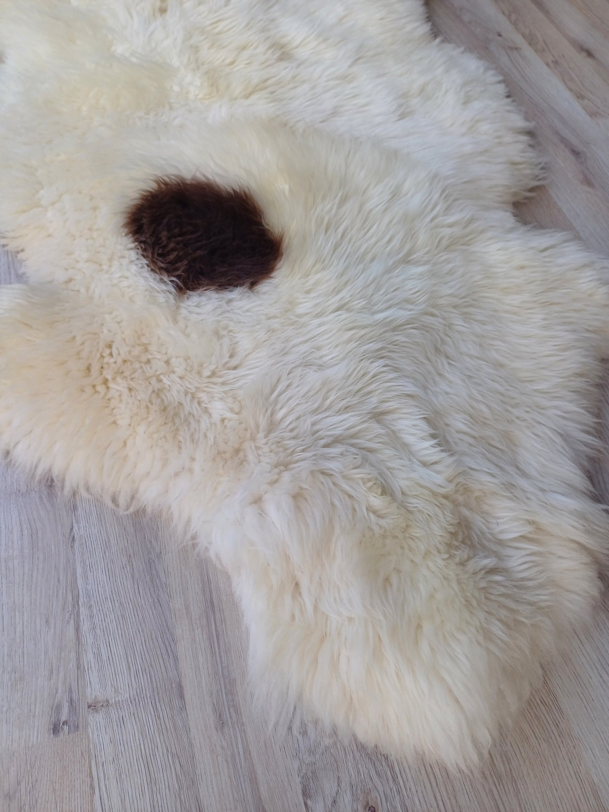 Leuk weetje is dat daaraan ook te zien is dat het een echte schapenvacht betreft. Namaak vachten verkleuren namelijk niet bij een andere lichtinval.