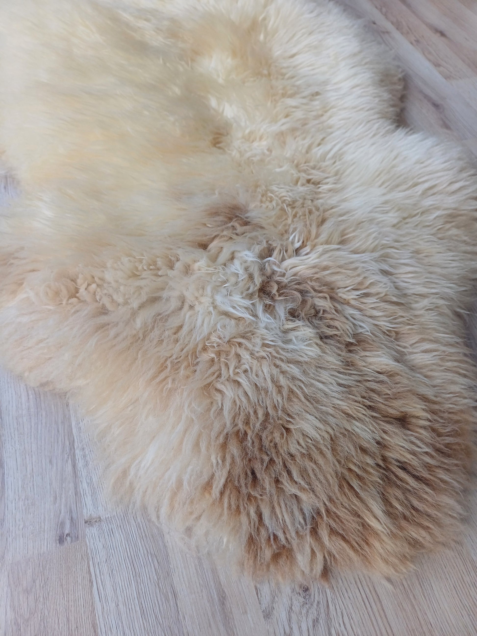Leuk weetje is dat daaraan ook te zien is dat het een echte schapenvacht betreft. Namaak vachten verkleuren namelijk niet bij een andere lichtinval.