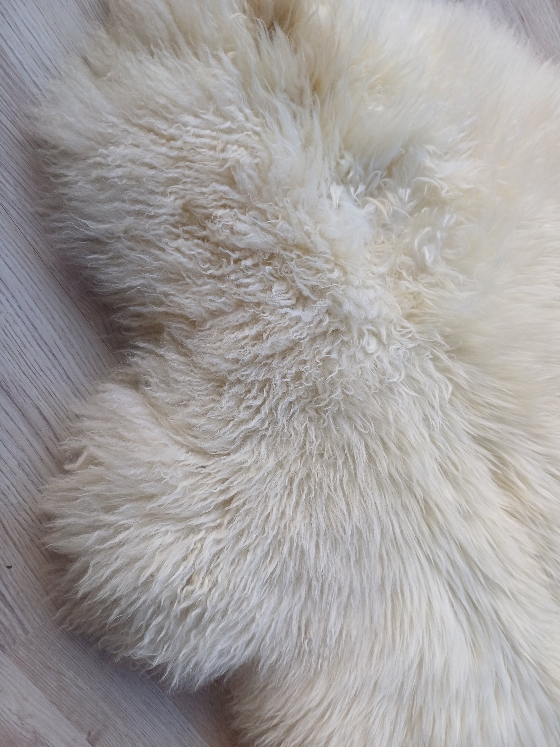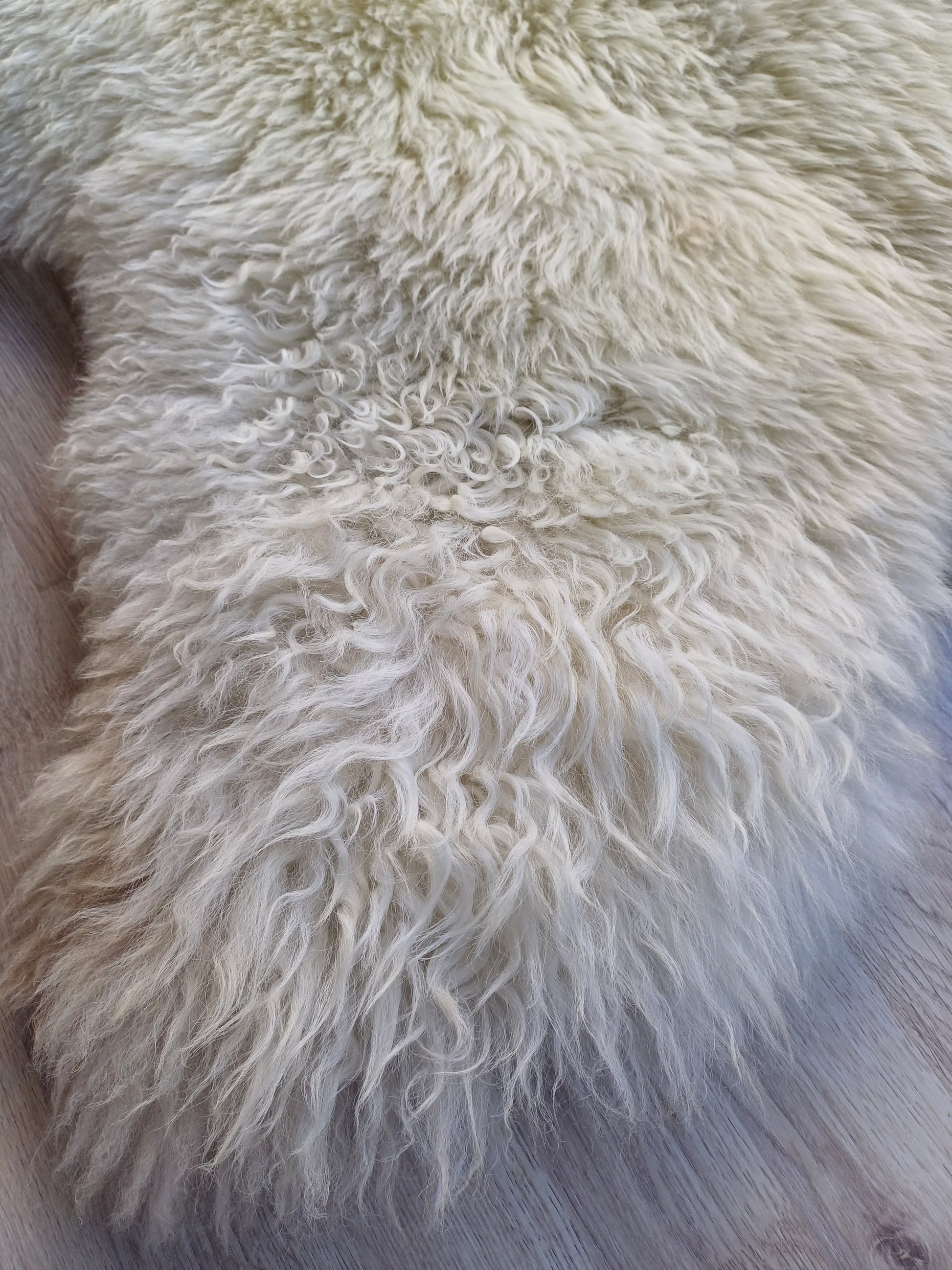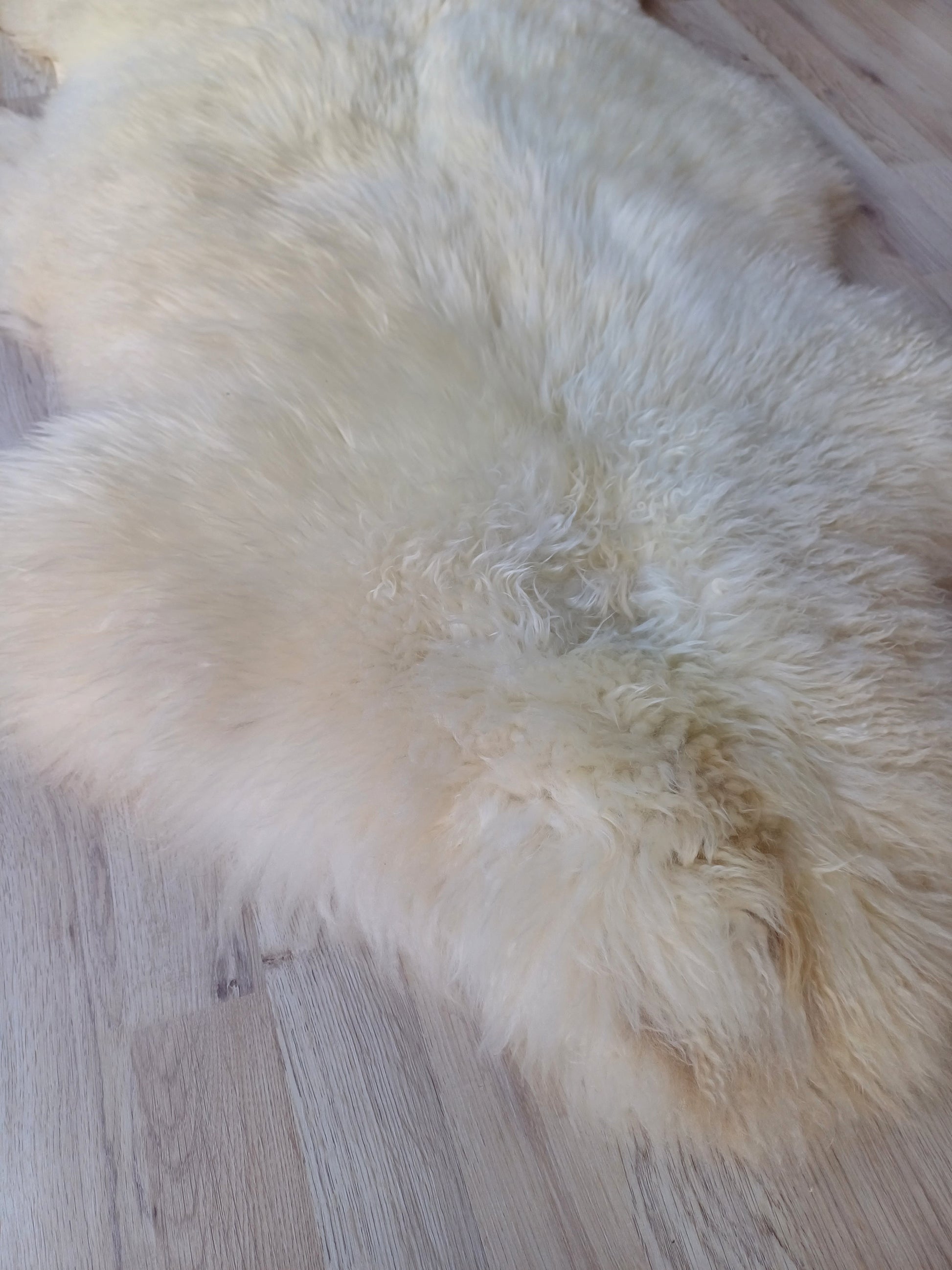 Leuk weetje is dat daaraan ook te zien is dat het een echte schapenvacht betreft. Namaak vachten verkleuren namelijk niet bij een andere lichtinval.