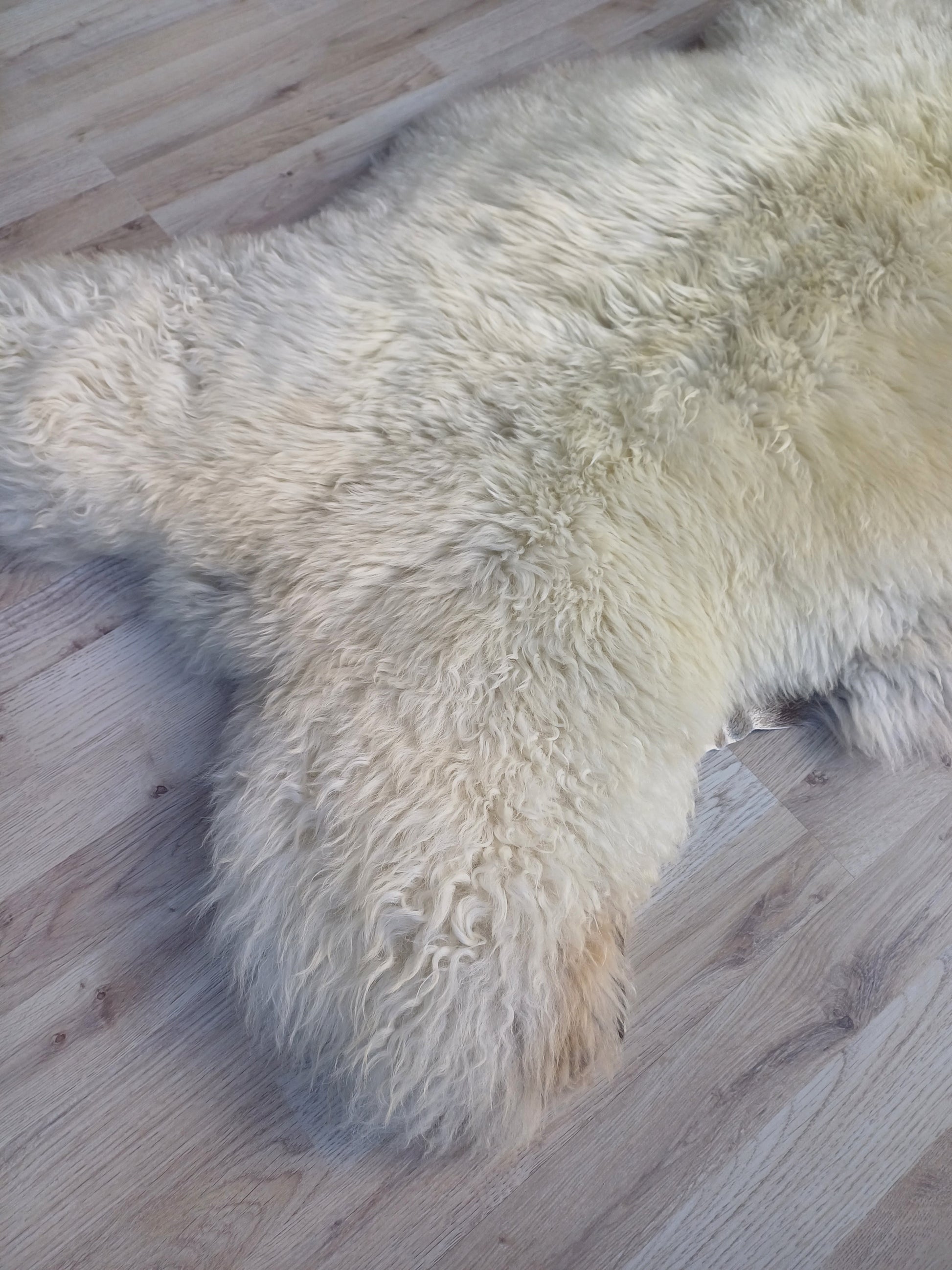 Prachtige Engelse schapenvacht met zachte en gladde middellange wol.