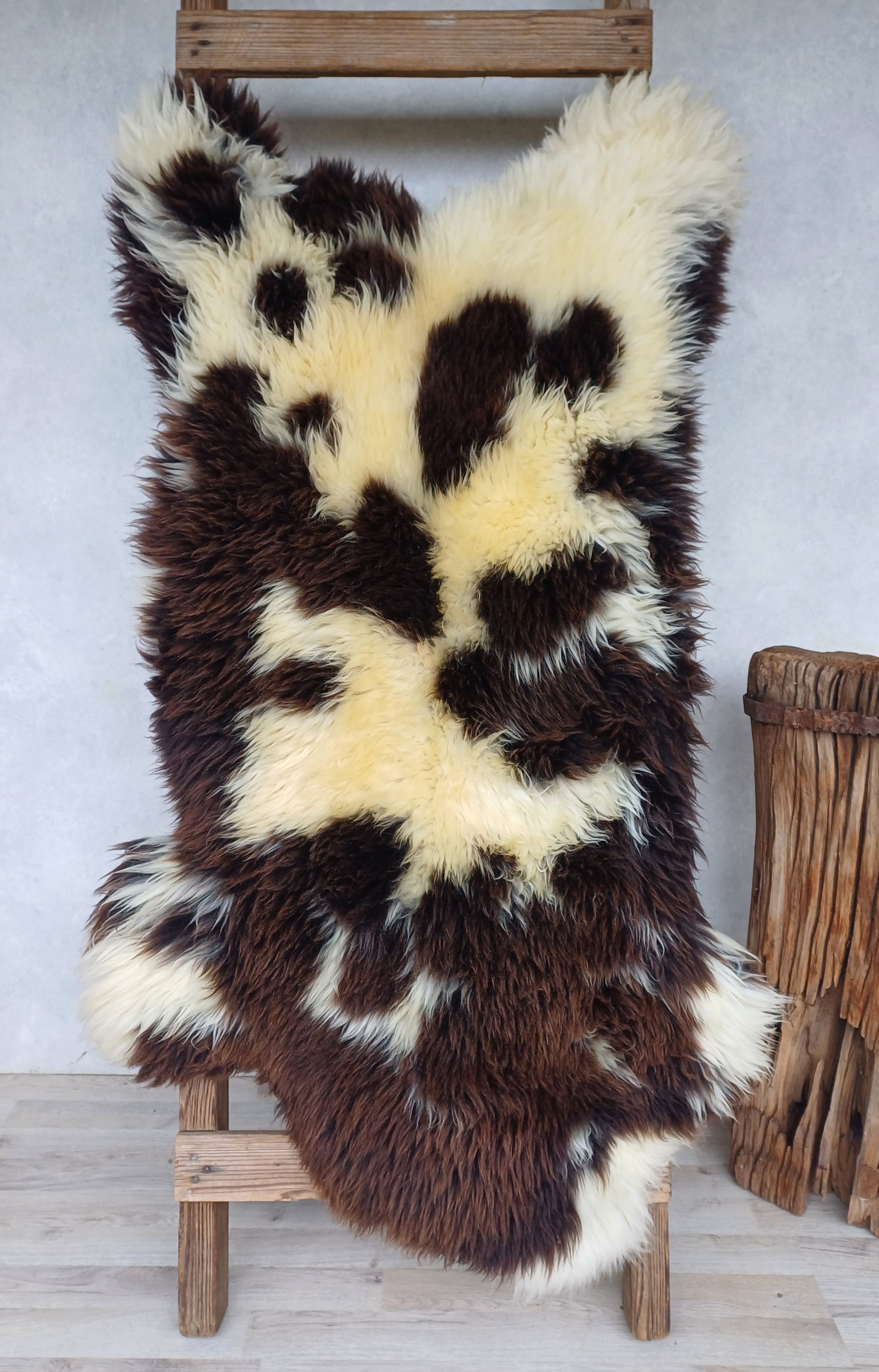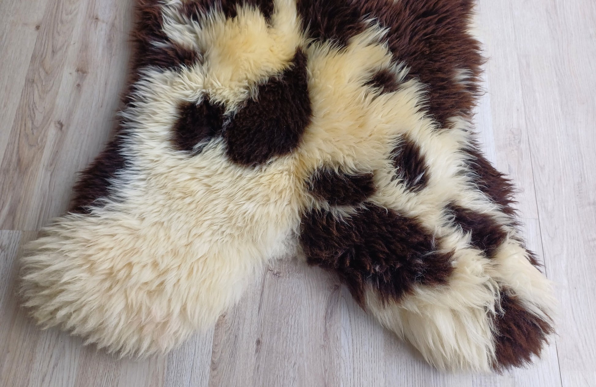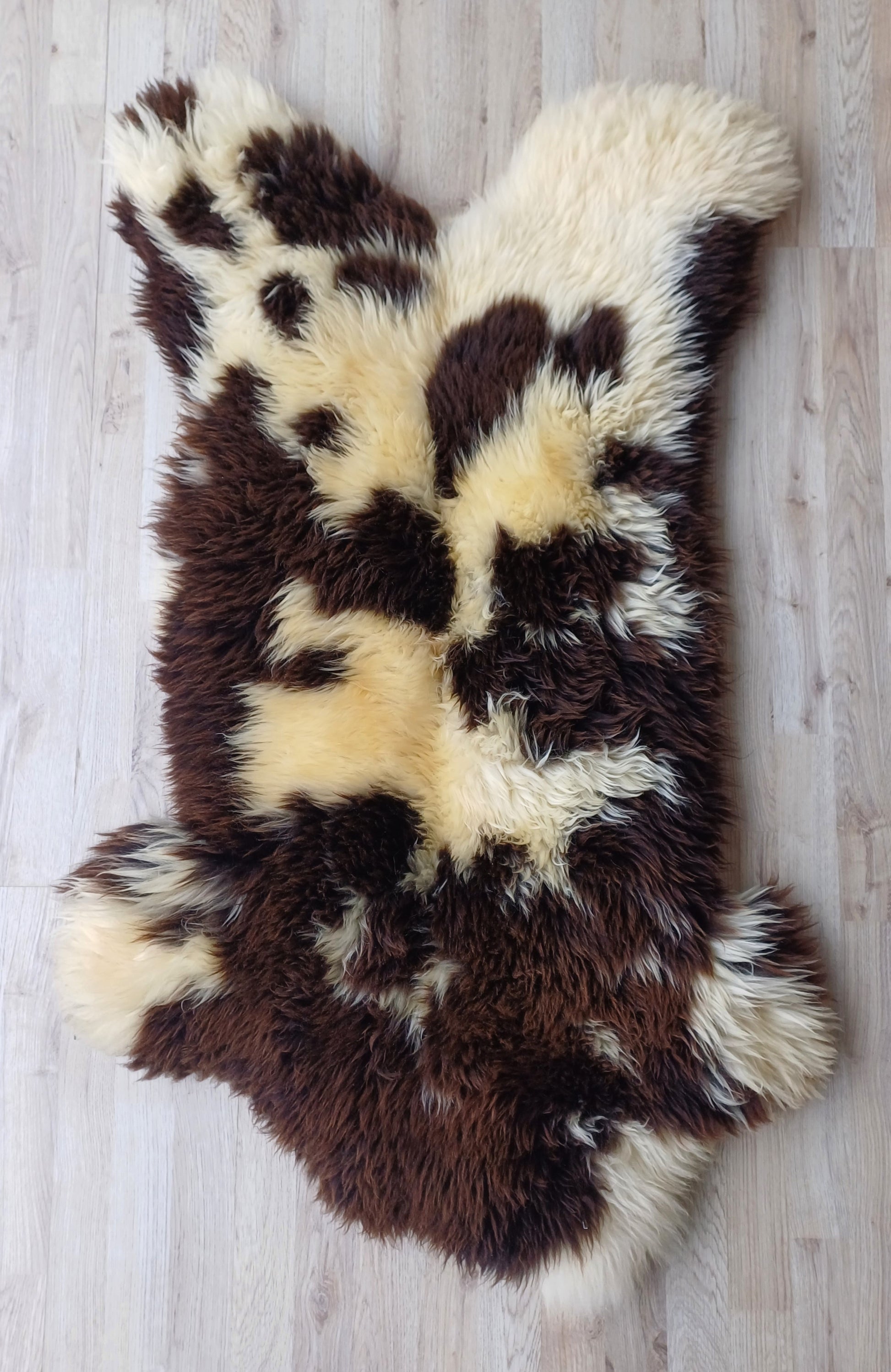 Prachtige bonte Hollandse schapenvacht met zachte middellange wol.