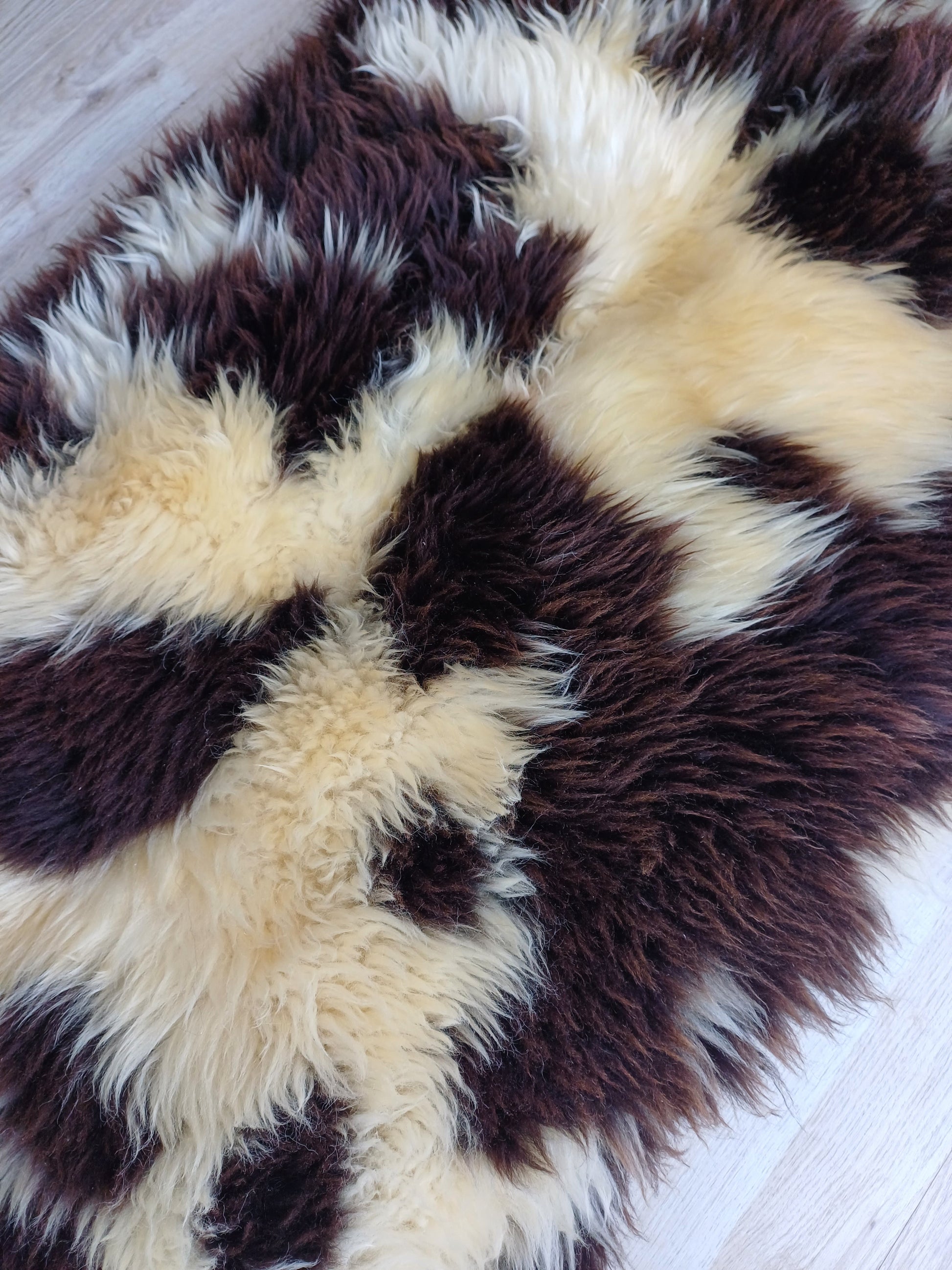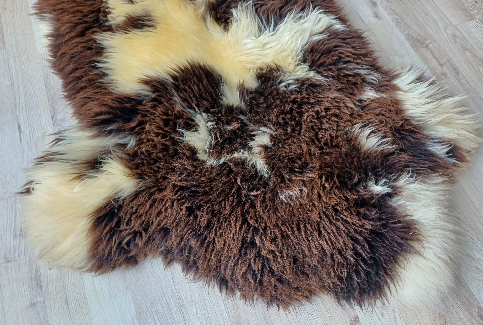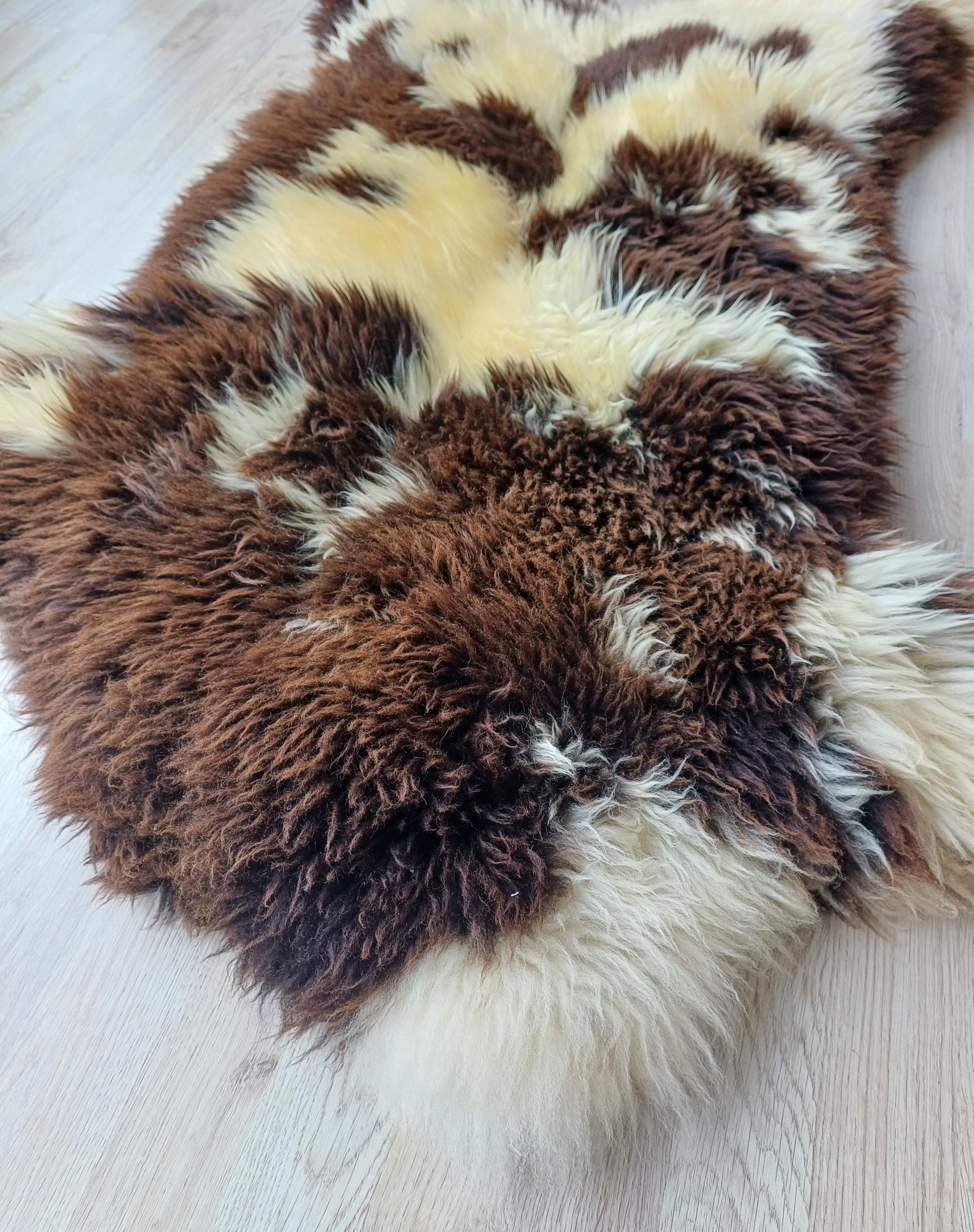 Leuk weetje is dat daaraan ook te zien is dat het een echte schapenvacht betreft. Namaak vachten verkleuren namelijk niet bij een andere lichtinval.