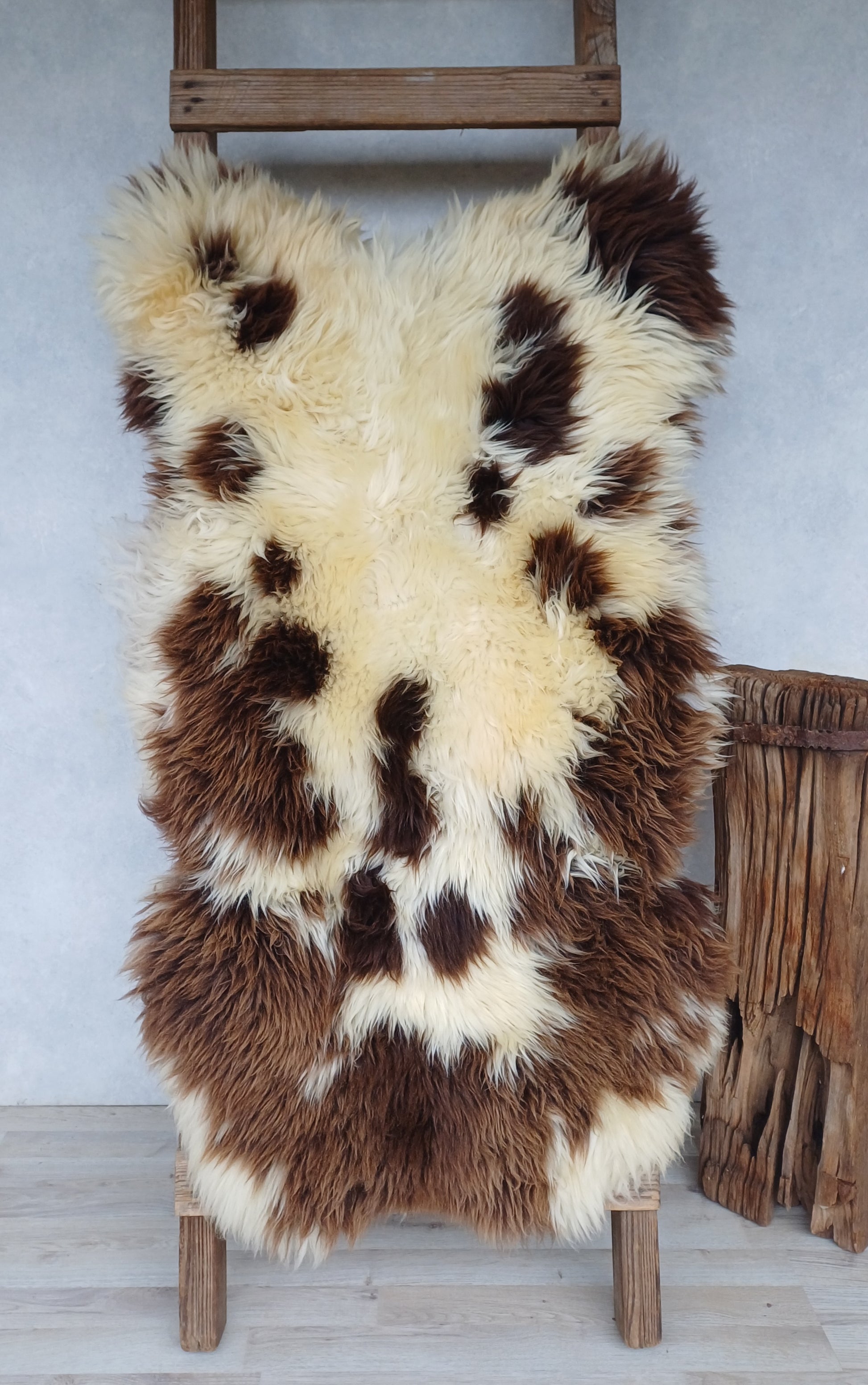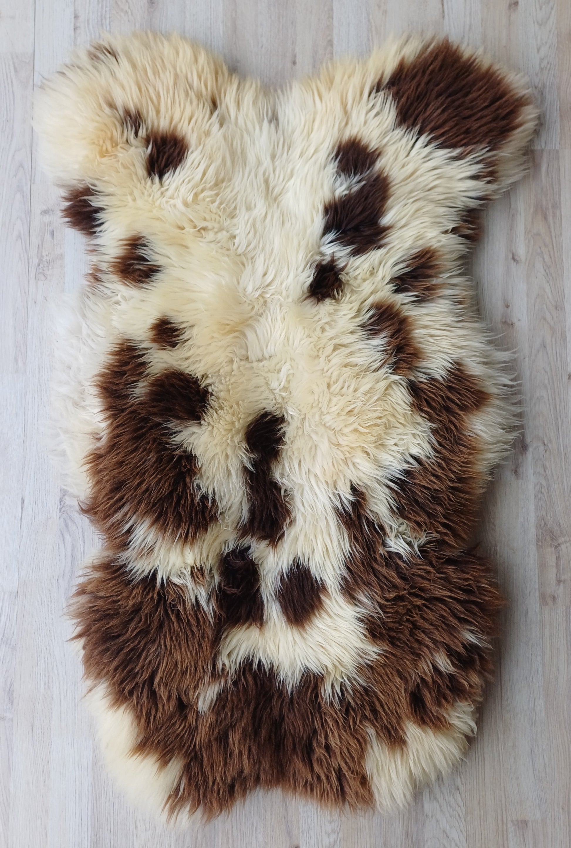 Prachtige bonte Hollandse schapenvacht met zachte middellange wol.