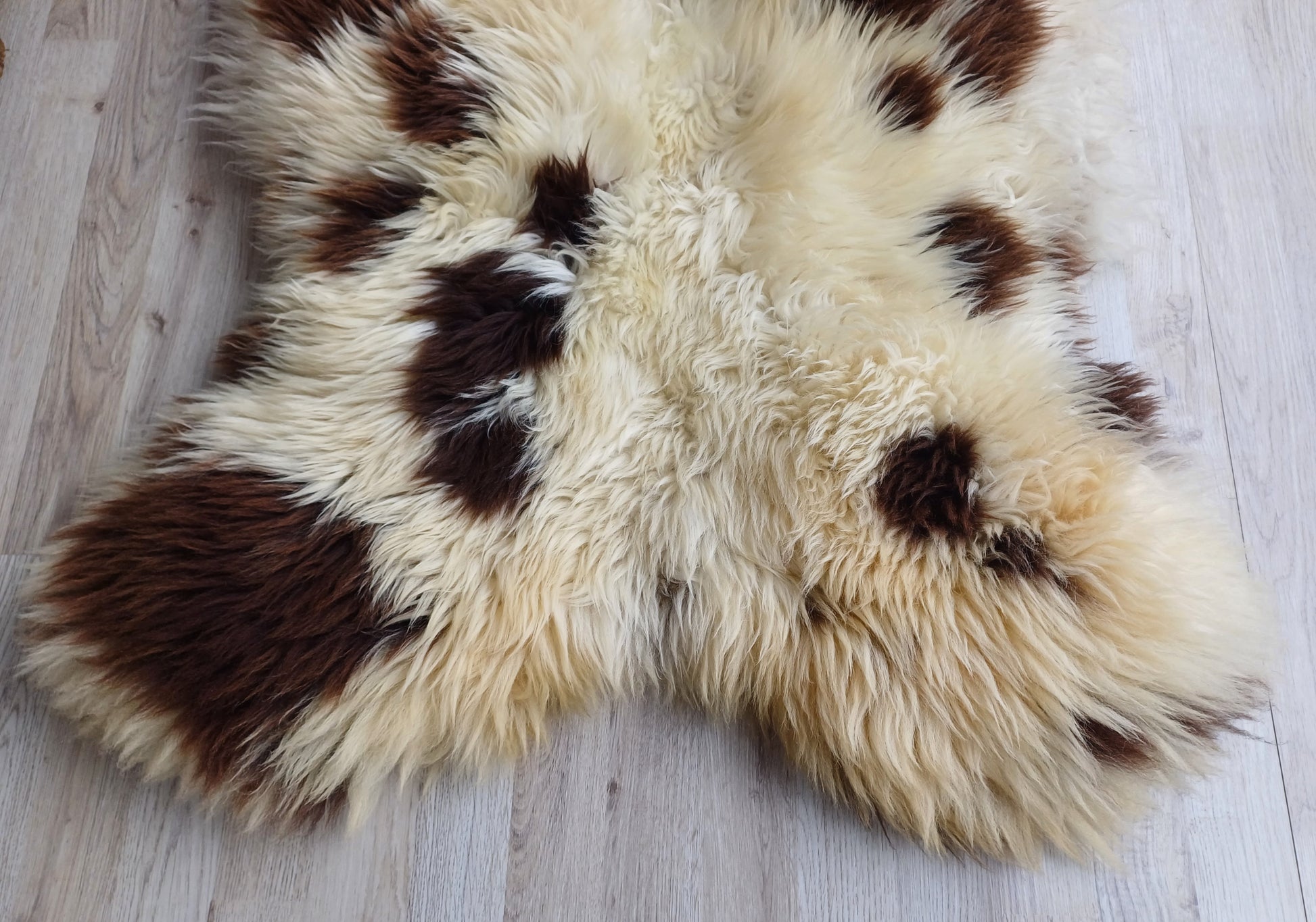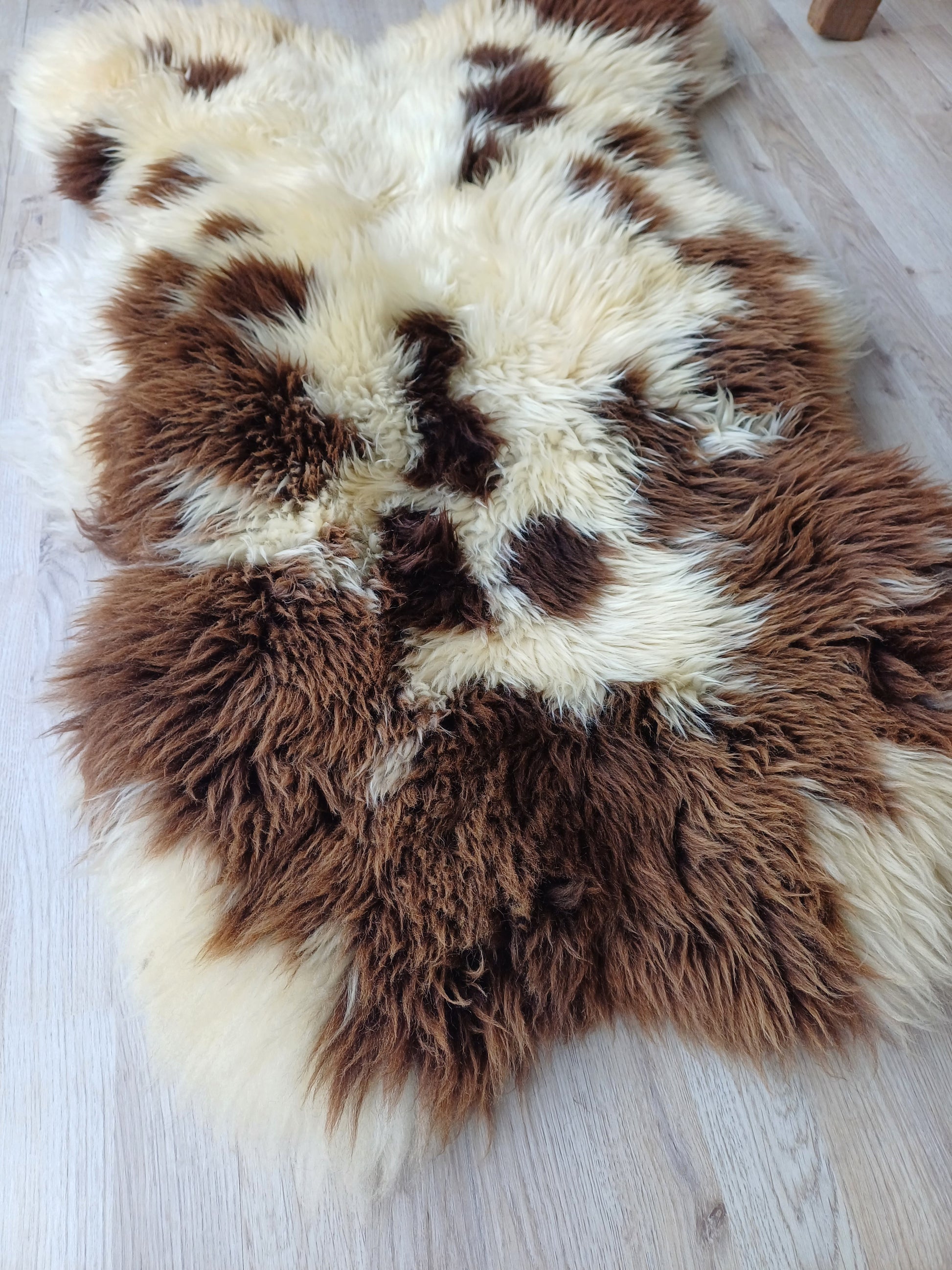 Leuk weetje is dat daaraan ook te zien is dat het een echte schapenvacht betreft. Namaak vachten verkleuren namelijk niet bij een andere lichtinval.