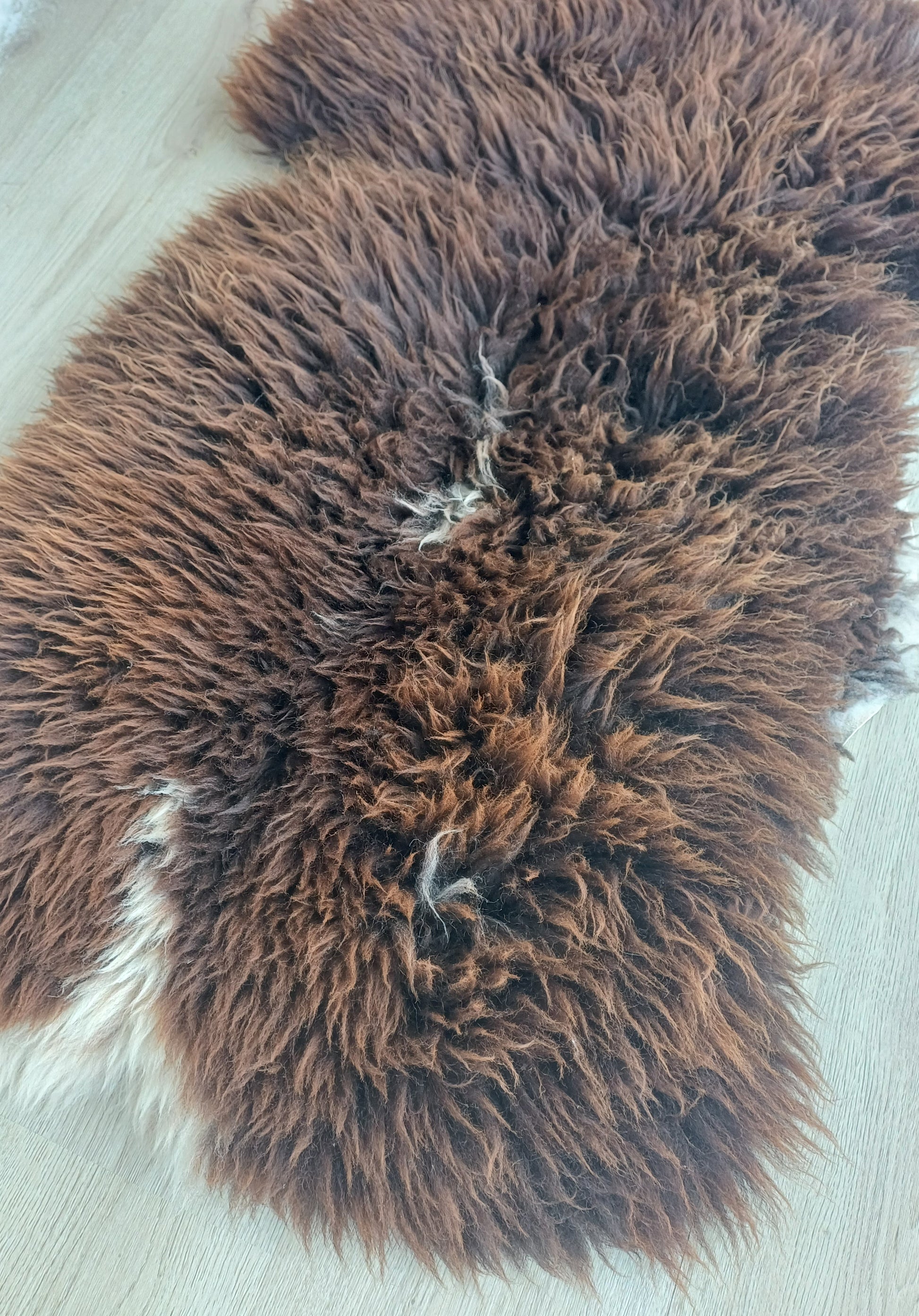 Leuk weetje is dat daaraan ook te zien is dat het een echte schapenvacht betreft. Namaak vachten verkleuren namelijk niet bij een andere lichtinval.