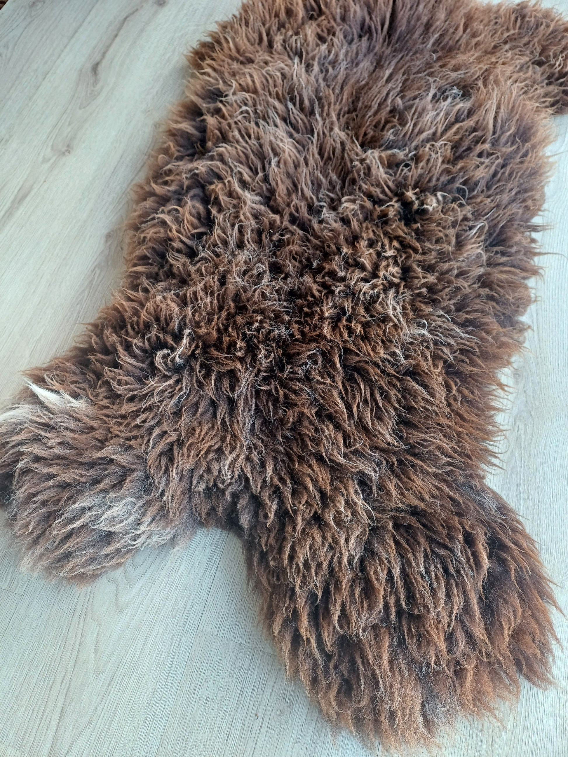 Leuk weetje is dat daaraan ook te zien is dat het een echte schapenvacht betreft. Namaak vachten verkleuren namelijk niet bij een andere lichtinval.