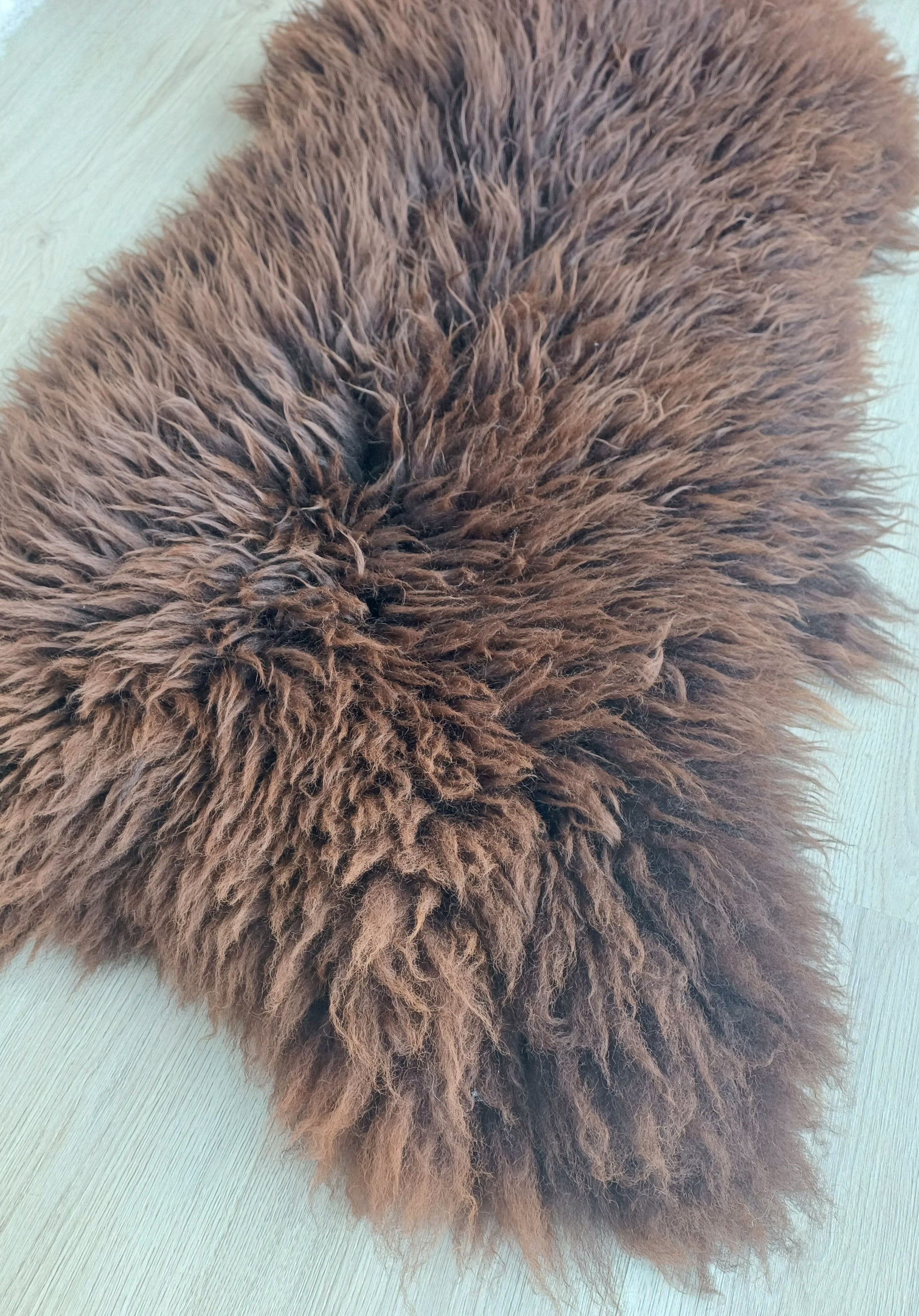 Leuk weetje is dat daaraan ook te zien is dat het een echte schapenvacht betreft. Namaak vachten verkleuren namelijk niet bij een andere lichtinval.