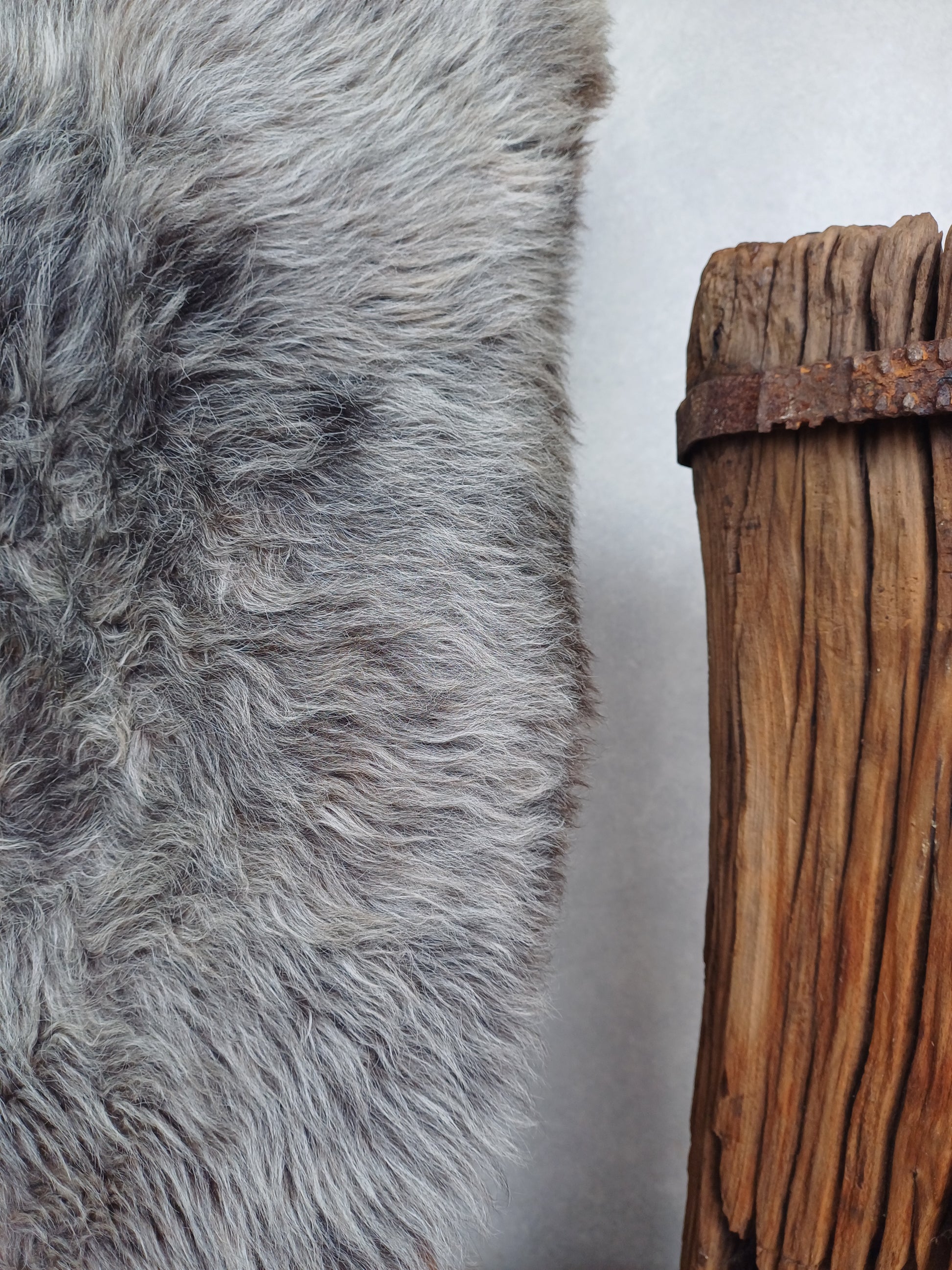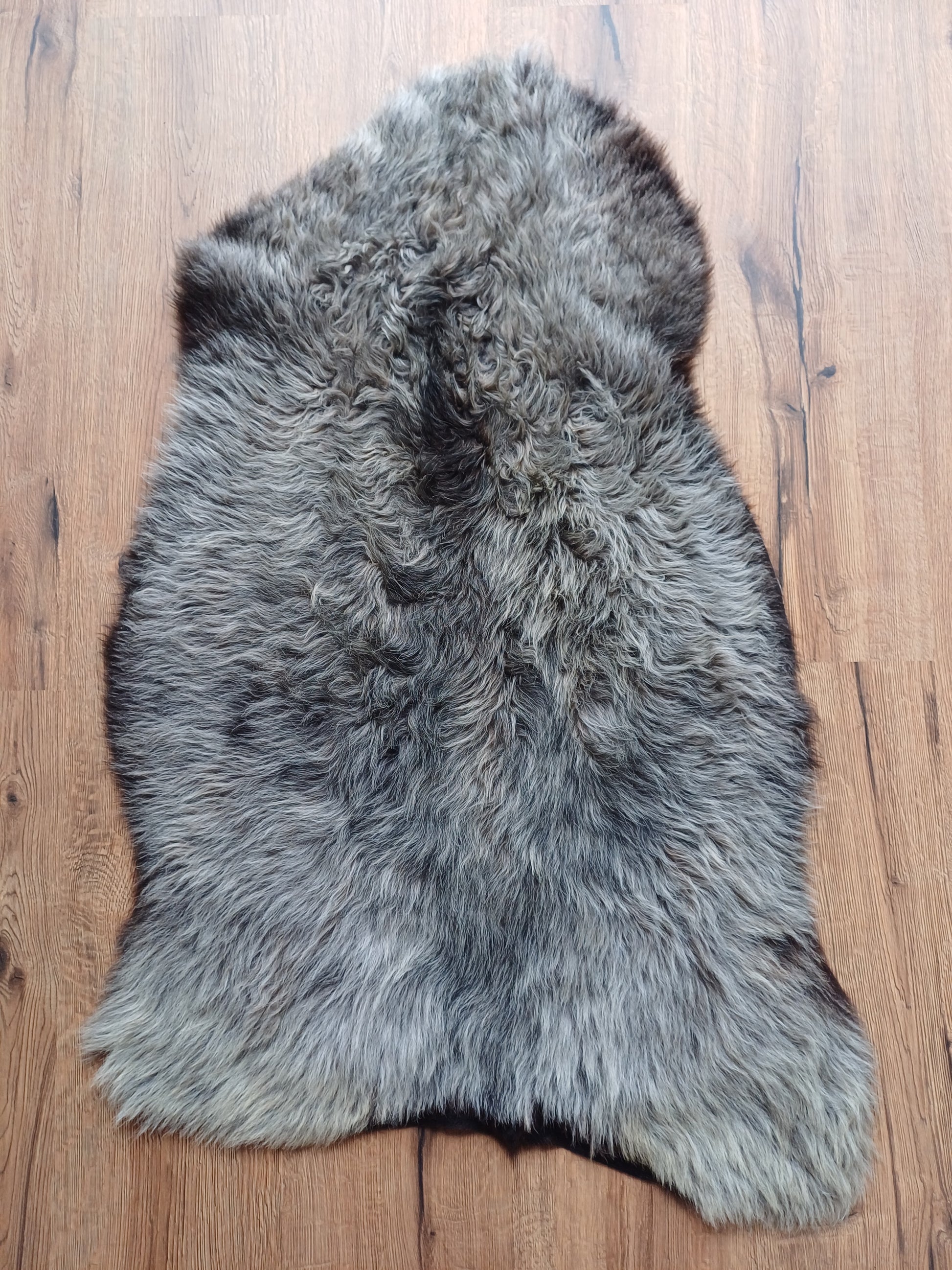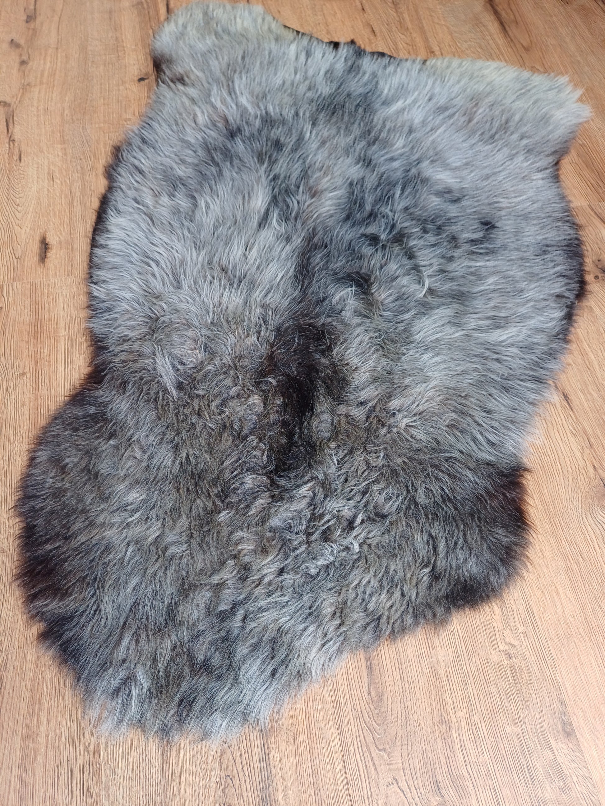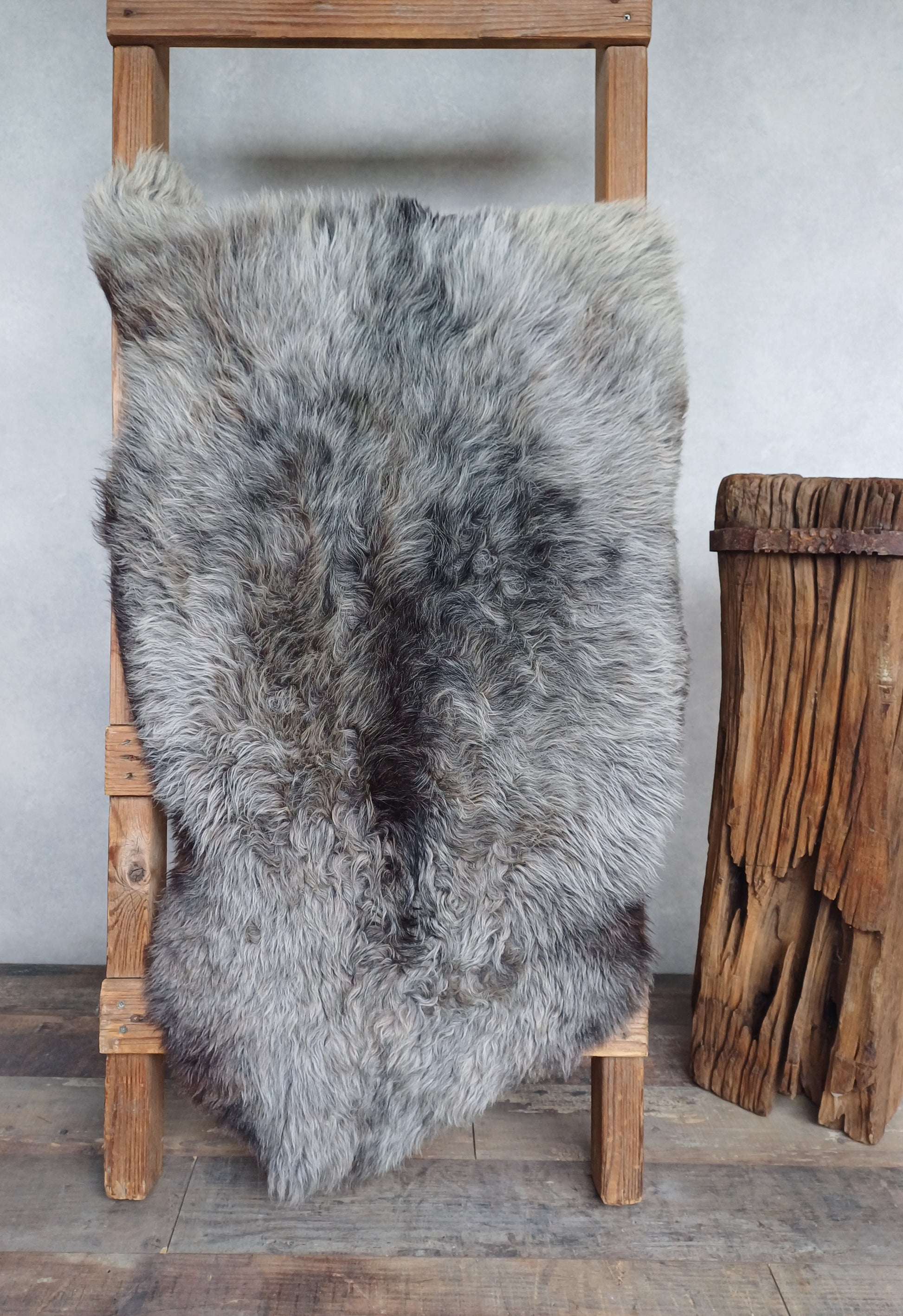 Prachtige decoratieve vacht van een Heidschnucke schaap in hele mooie grijstinten. Het Heidschnucke schaap is een schapenras uit het Noorden van Duitsland. Heidschnucke vachten zijn er in diverse kleuren. Ze zijn een beetje ruig en hebben een geheel eigen "touch".