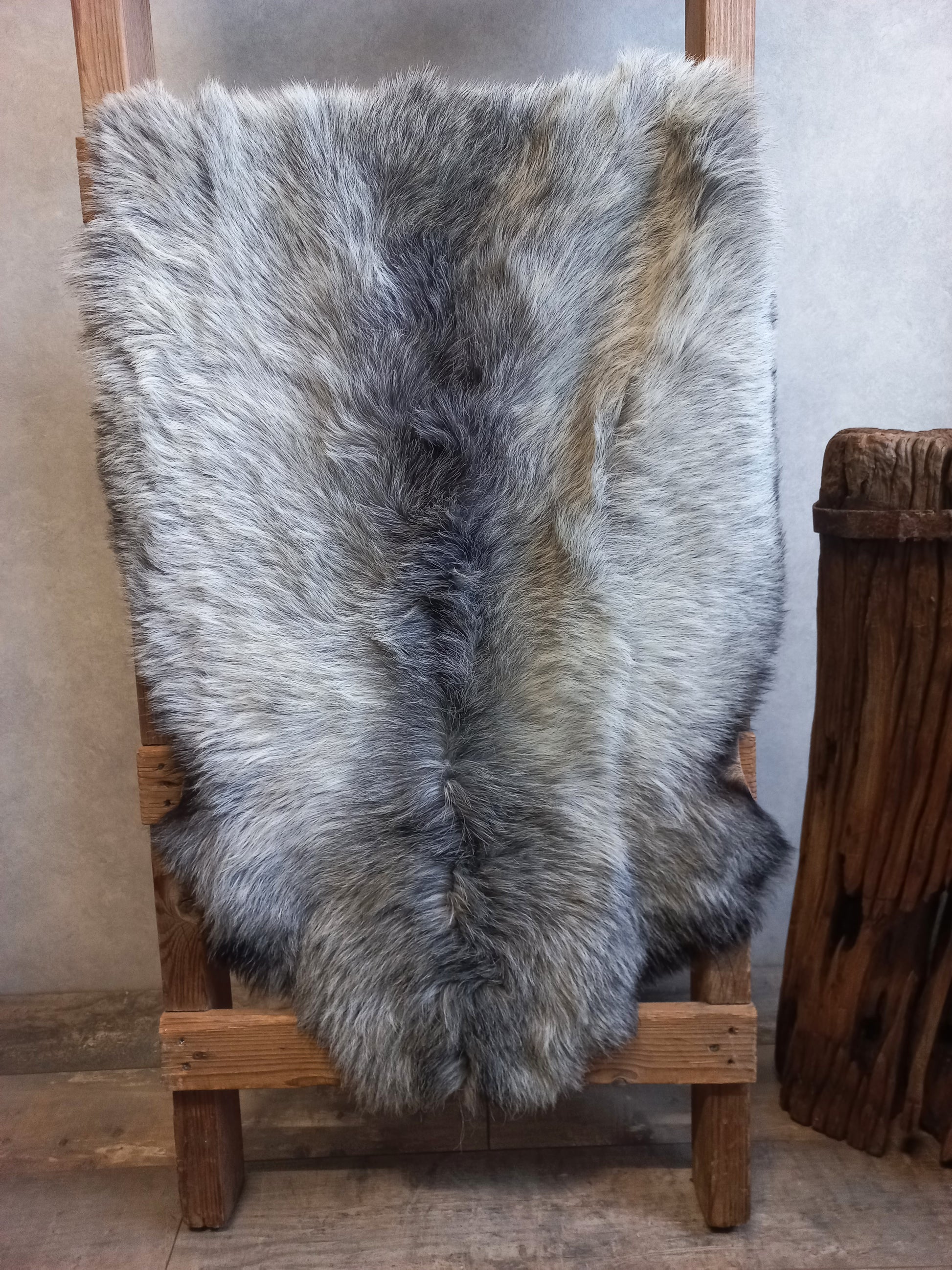 Prachtige decoratieve vacht van een Heidschnucke schaap in hele mooie grijstinten. Het Heidschnucke schaap is een schapenras uit het Noorden van Duitsland. Heidschnucke vachten zijn er in diverse kleuren. Ze zijn een beetje ruig en hebben een geheel eigen "touch".