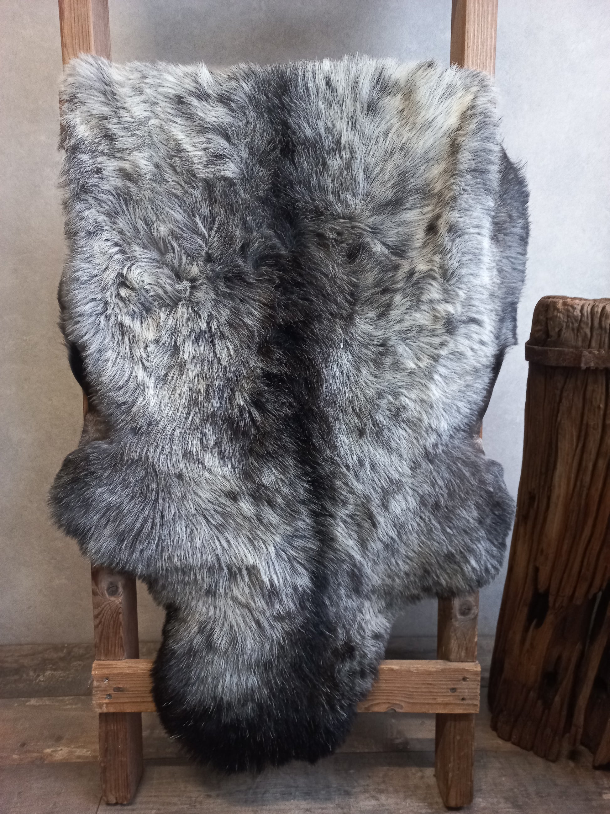 Prachtige decoratieve vacht van een Heidschnucke schaap in hele mooie grijstinten. Het Heidschnucke schaap is een schapenras uit het Noorden van Duitsland. Heidschnucke vachten zijn er in diverse kleuren. Ze zijn een beetje ruig en hebben een geheel eigen "touch".