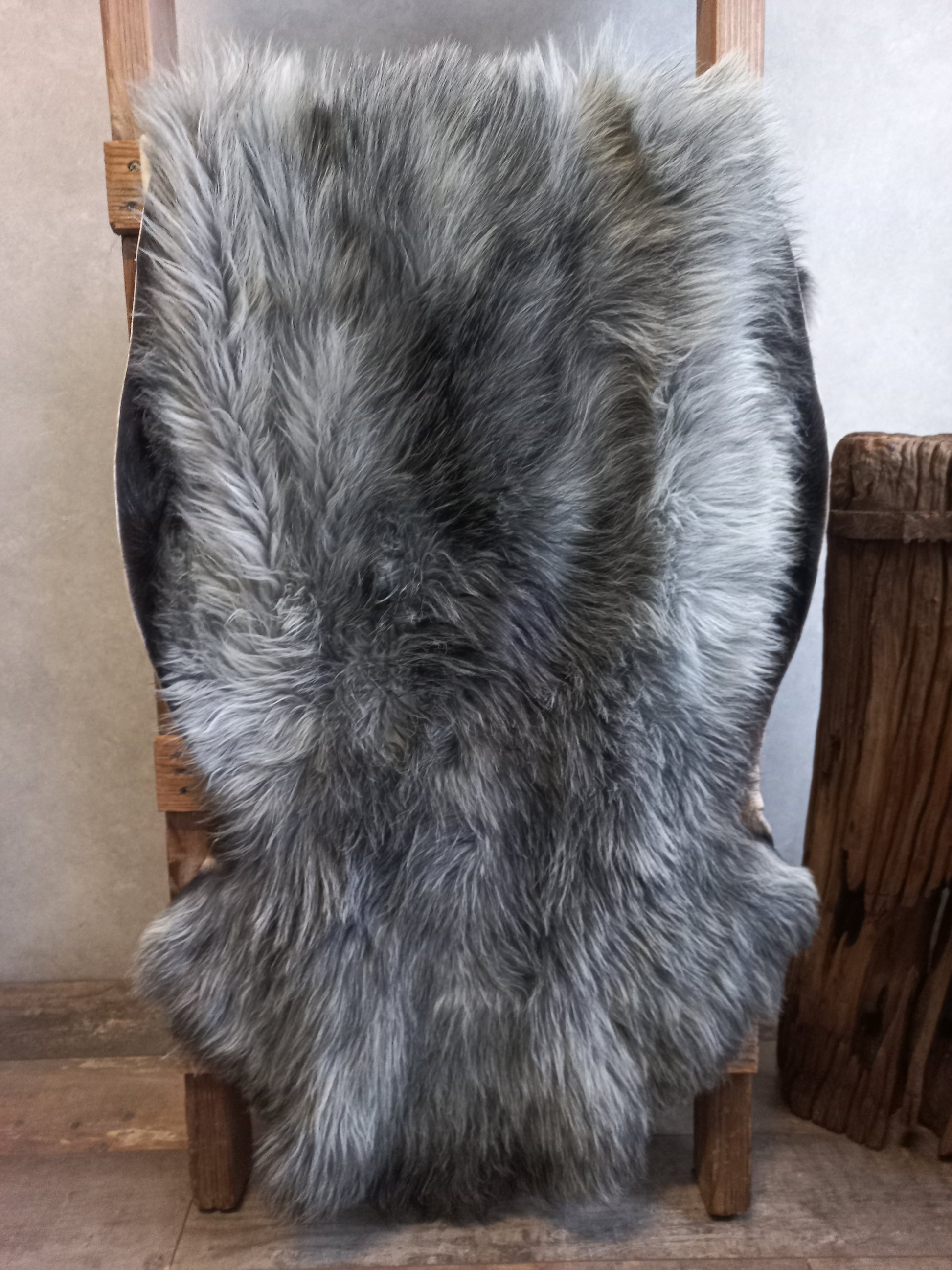 Prachtige decoratieve vacht van een Heidschnucke schaap in hele mooie grijstinten. Het Heidschnucke schaap is een schapenras uit het Noorden van Duitsland. Heidschnucke vachten zijn er in diverse kleuren. Ze zijn een beetje ruig en hebben een geheel eigen "touch".