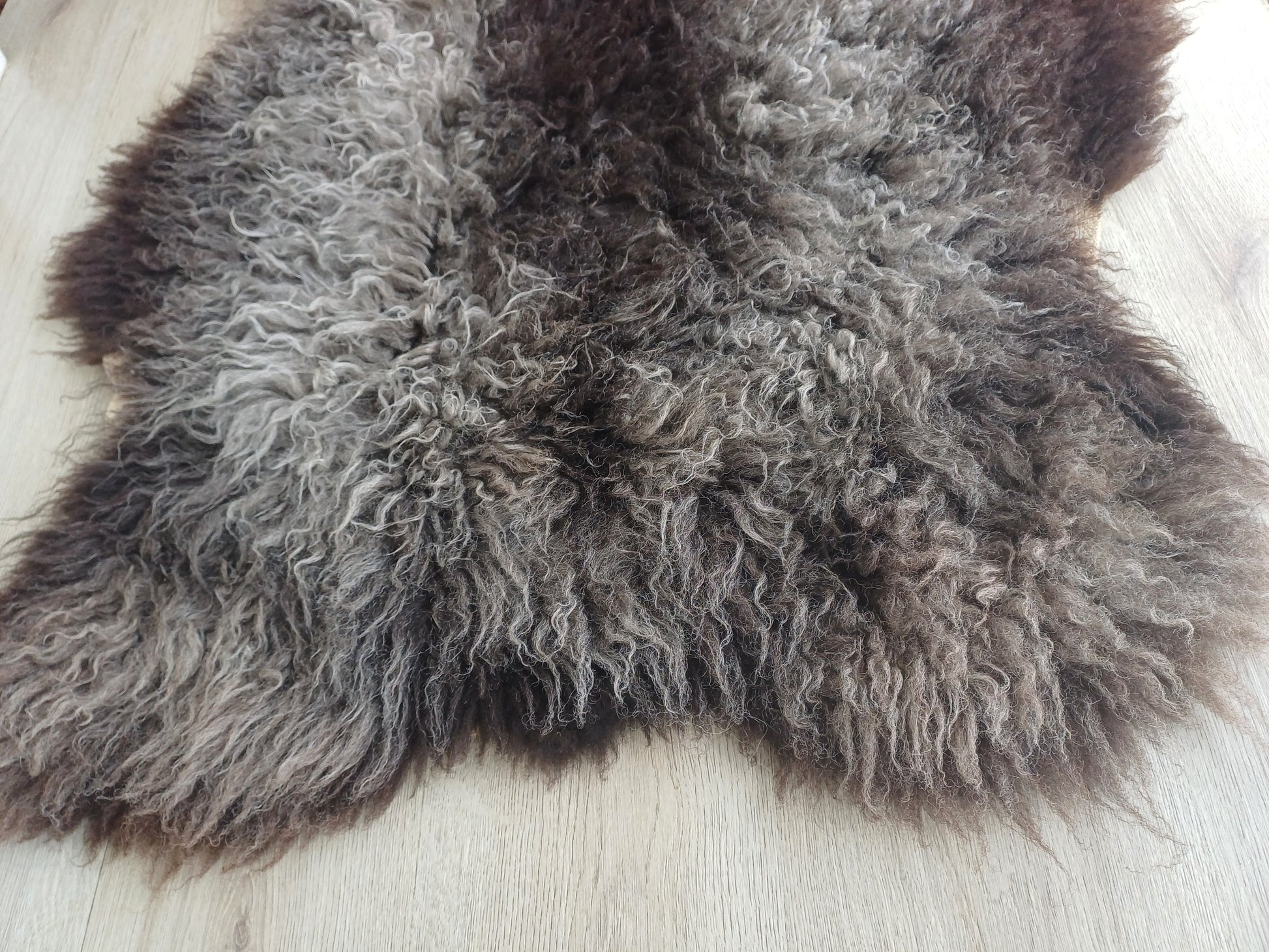 Leuk weetje is dat daaraan ook te zien is dat het een echte schapenvacht betreft. Namaak vachten verkleuren namelijk niet bij een andere lichtinval.