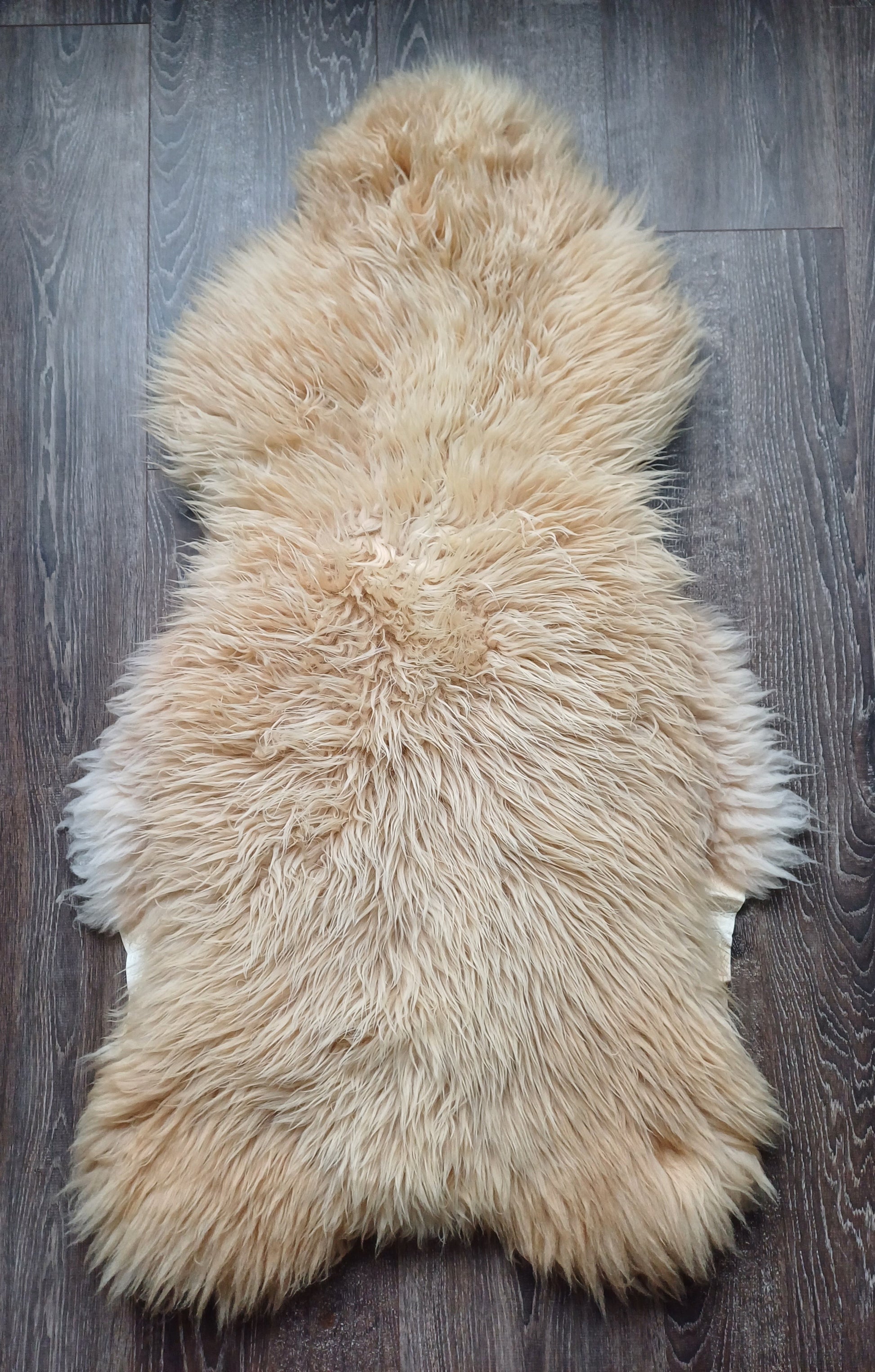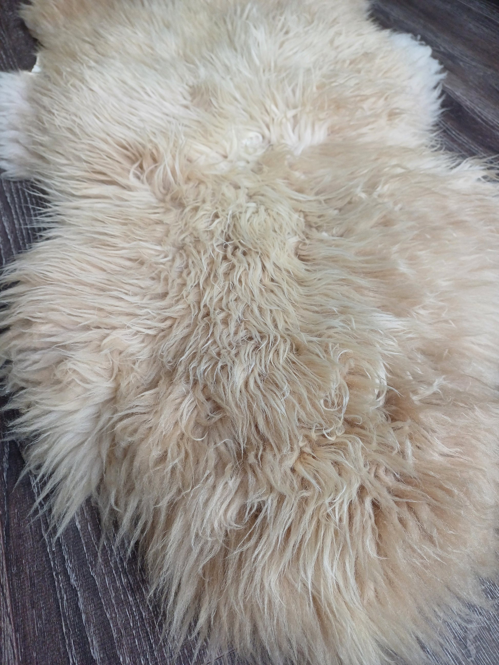 Leuk weetje is dat daaraan ook te zien is dat het een echte schapenvacht betreft. Namaak vachten verkleuren namelijk niet bij een andere lichtinval.