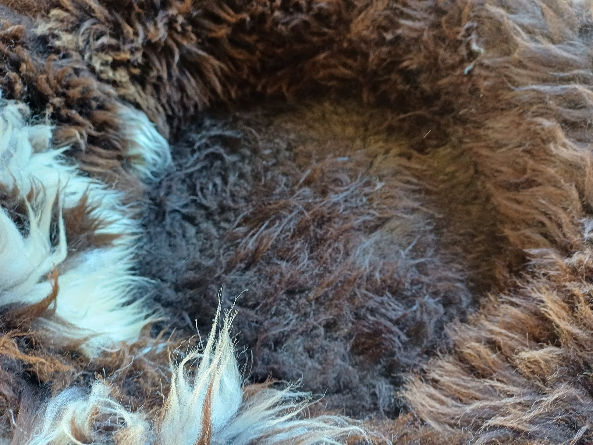 Prachtige mand gemaakt van 100% ecologisch gelooide stukken schapenvacht. Het gebruik van verschillende kleuren en vachten van verschillende schapenrassen zorgen ervoor dat elke mand uniek is. U en uw huisdier genieten van alle voordelen die een schapenvacht biedt maar dan in de vorm van een mand. Dubbel zo knus dus.