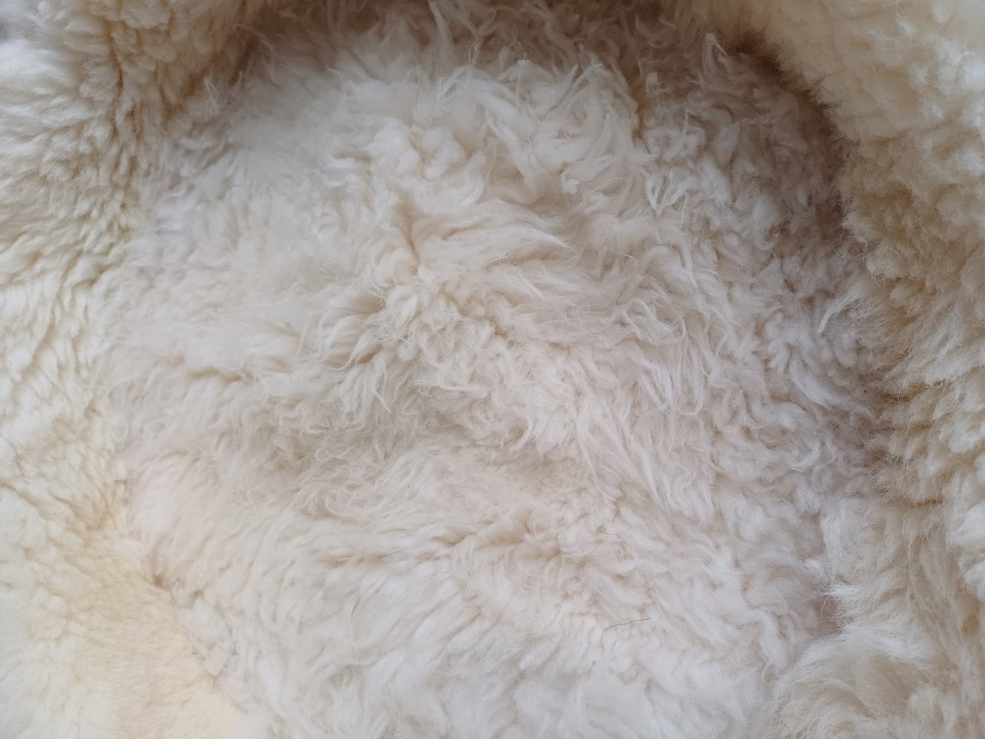 Prachtige mand gemaakt van 100% ecologisch gelooide stukken schapenvacht. Het gebruik van verschillende kleuren en vachten van verschillende schapenrassen zorgen ervoor dat elke mand uniek is. U en uw huisdier genieten van alle voordelen die een schapenvacht biedt maar dan in de vorm van een mand. Dubbel zo knus dus.