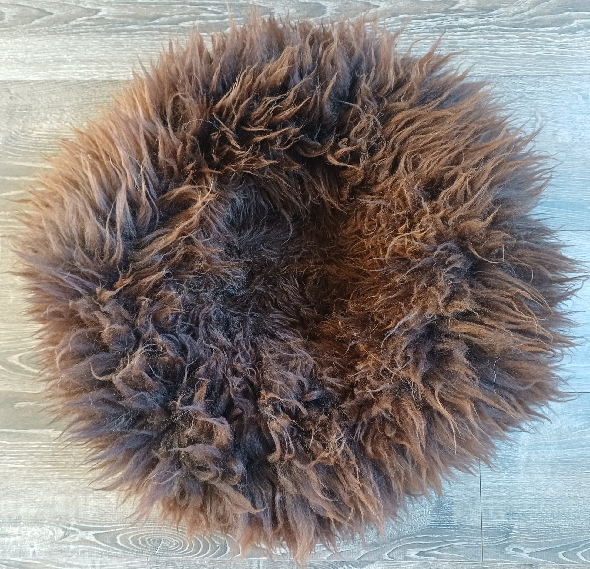 Prachtige mand gemaakt van 100% ecologisch gelooide stukken schapenvacht. Het gebruik van verschillende kleuren en vachten van verschillende schapenrassen zorgen ervoor dat  elke mand uniek is. U en uw huisdier genieten van alle voordelen die een schapenvacht biedt maar dan in de vorm van een mand. Dubbel zo knus dus.