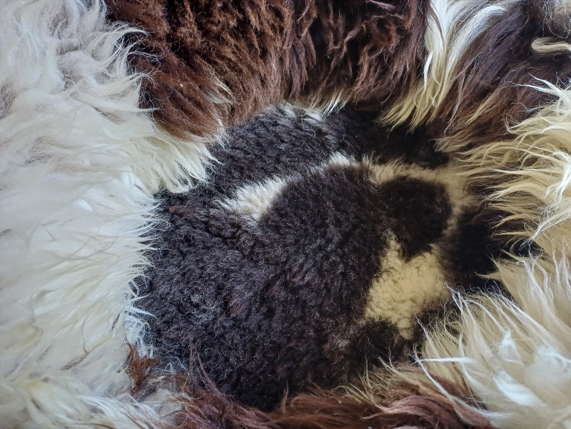 Prachtige mand gemaakt van 100% ecologisch gelooide stukken schapenvacht. Het gebruik van verschillende kleuren en vachten van verschillende schapenrassen zorgen ervoor dat elke mand uniek is. U en uw huisdier genieten van alle voordelen die een schapenvacht biedt maar dan in de vorm van een mand. Dubbel zo knus dus.