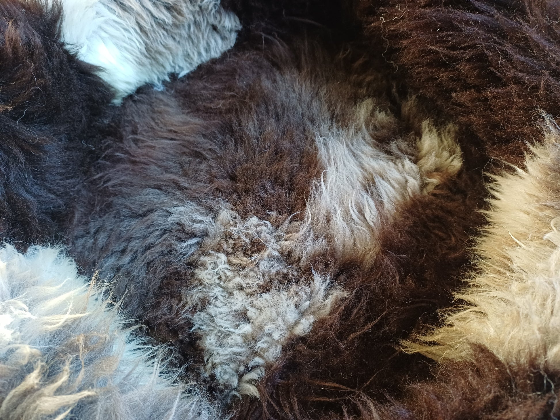 Prachtige mand gemaakt van 100% ecologisch gelooide stukken schapenvacht. Het gebruik van verschillende kleuren en vachten van verschillende schapenrassen zorgen ervoor dat elke mand uniek is. U en uw huisdier genieten van alle voordelen die een schapenvacht biedt maar dan in de vorm van een mand. Dubbel zo knus dus.