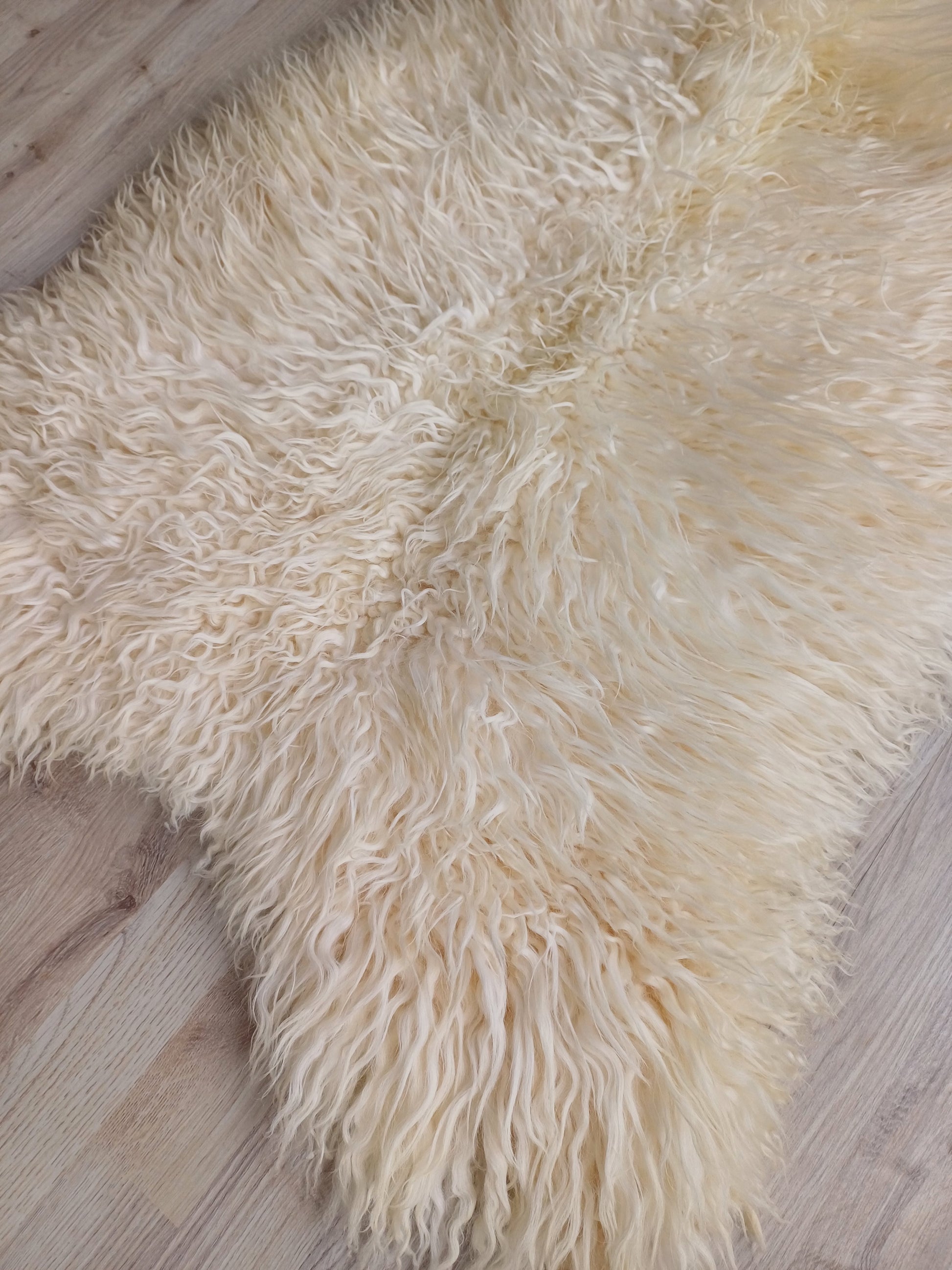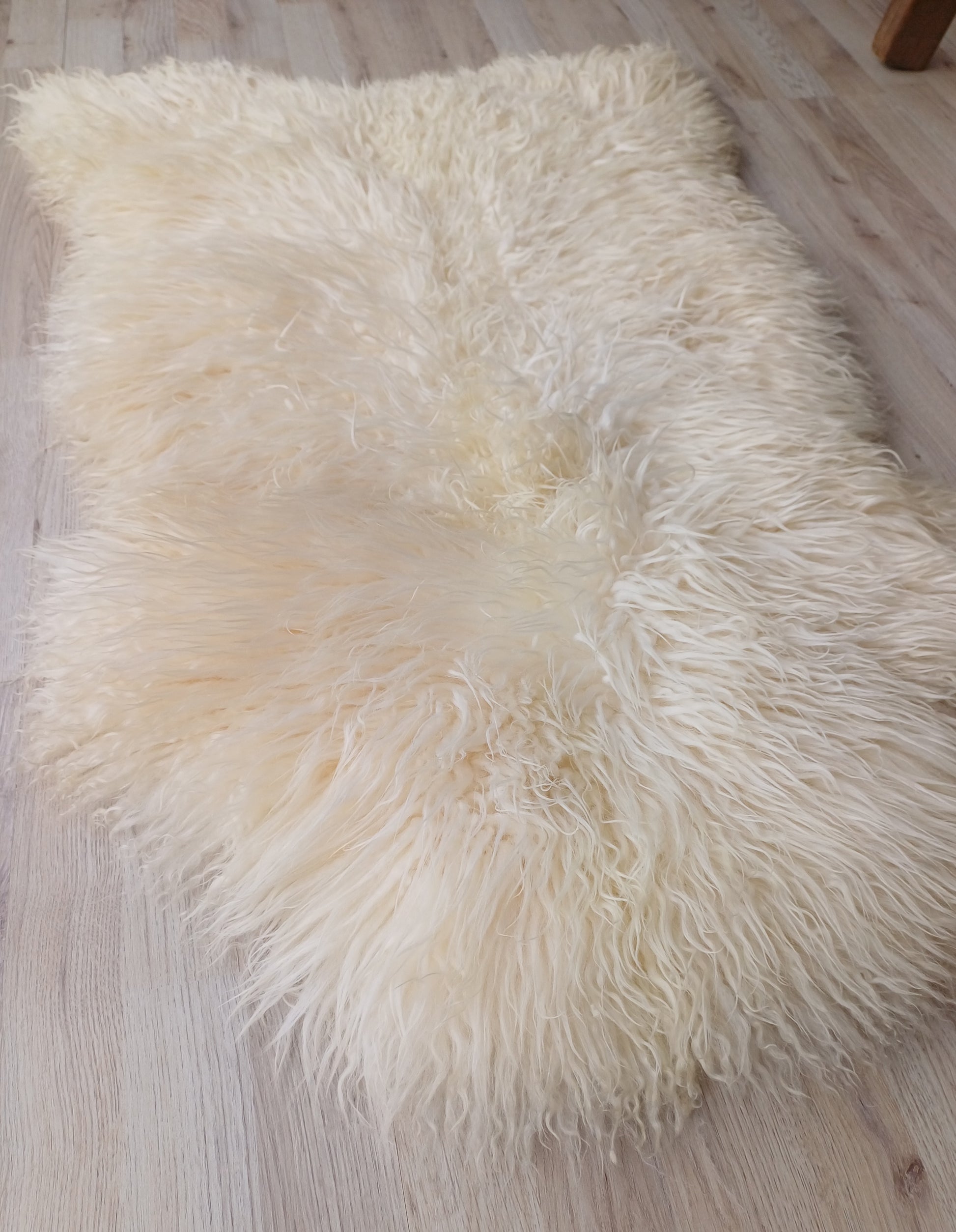 Leuk weetje is dat daaraan ook te zien is dat het een echte schapenvacht betreft. Namaak vachten verkleuren namelijk niet bij een andere lichtinval.