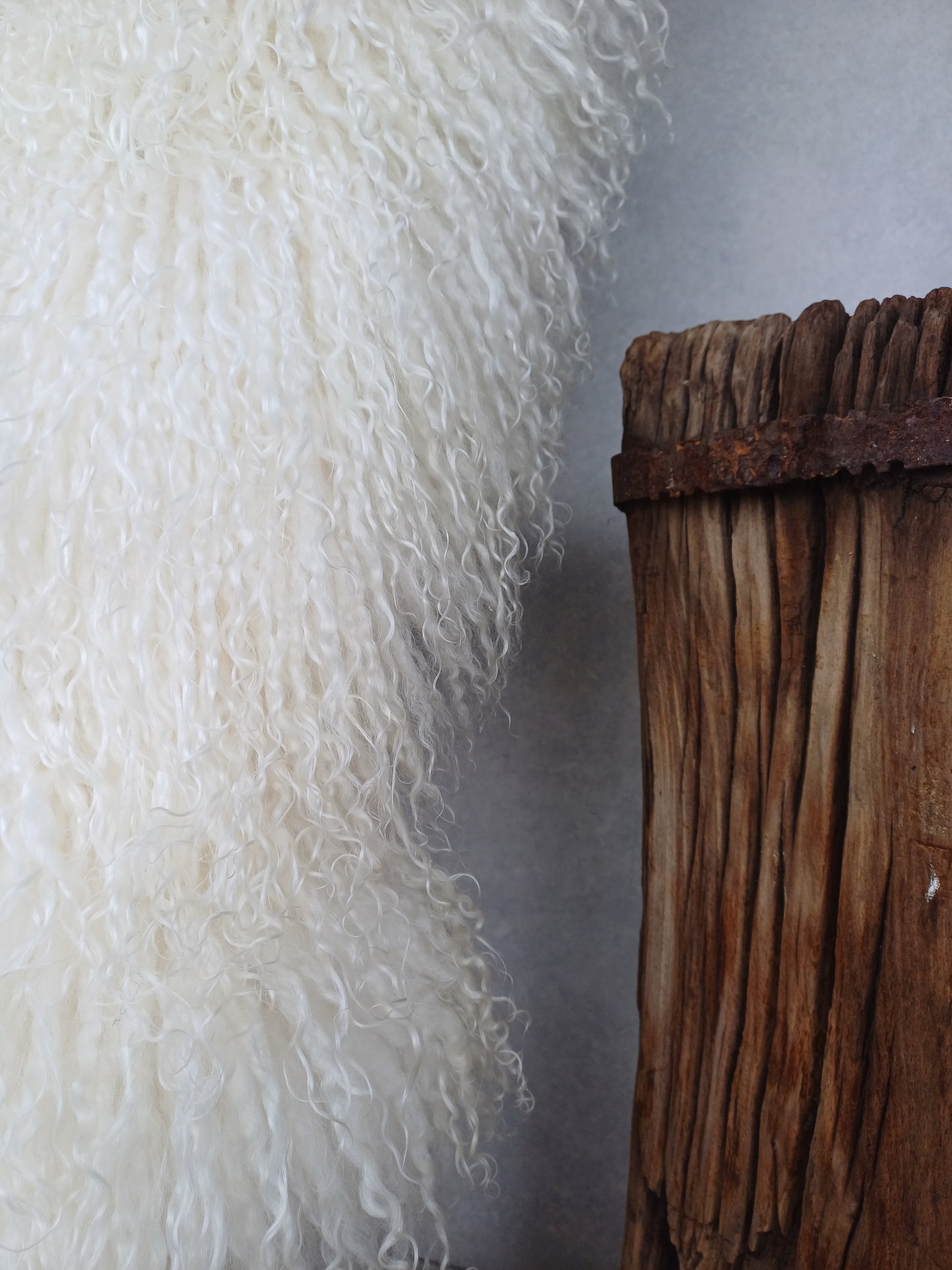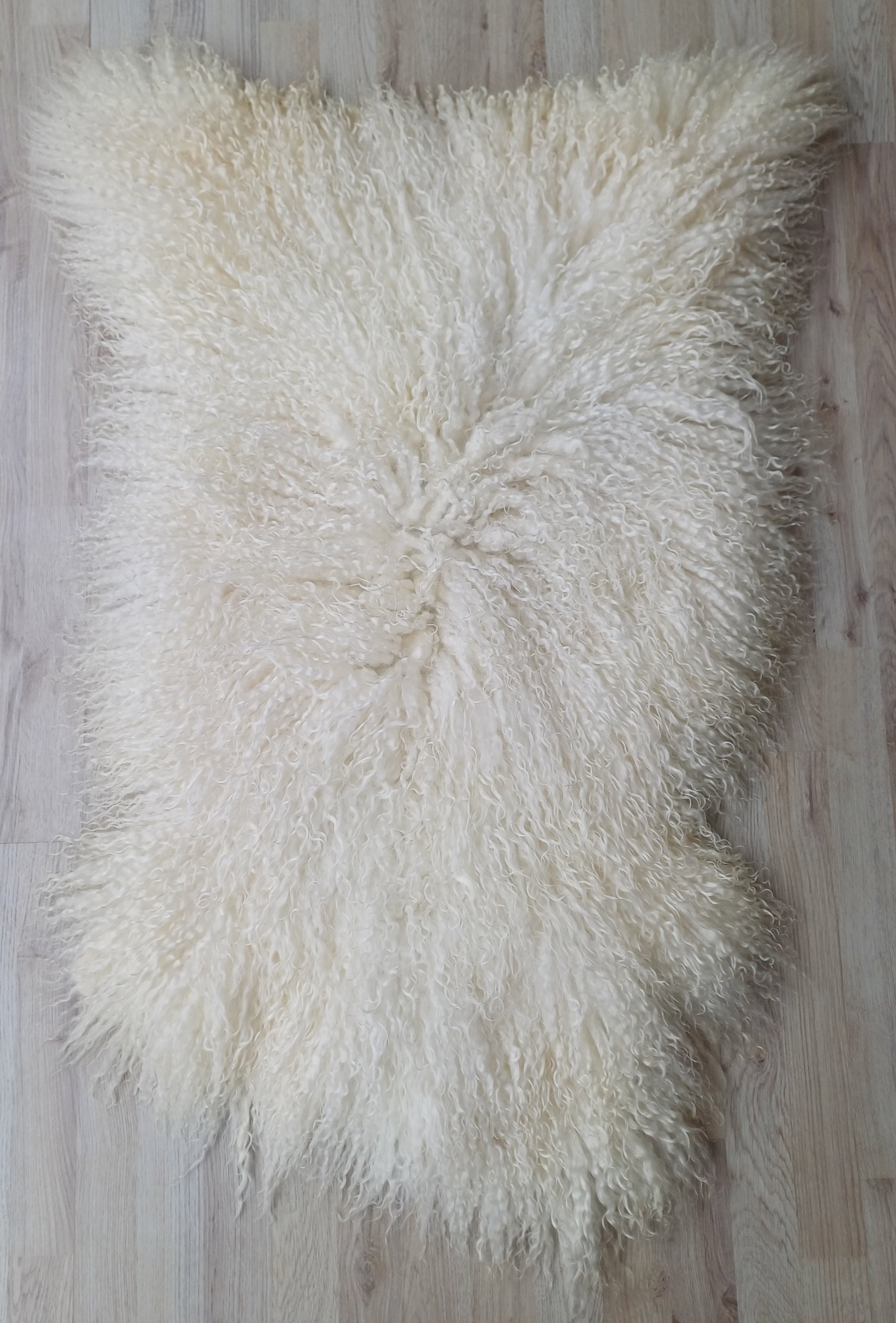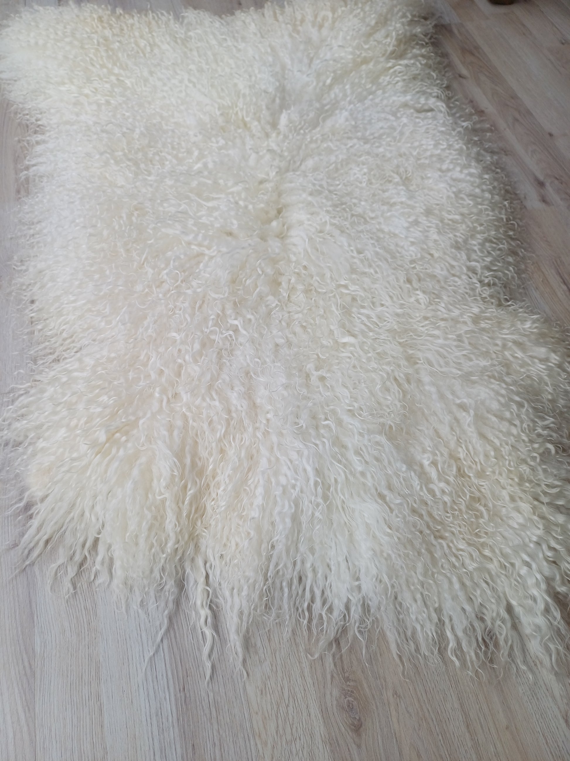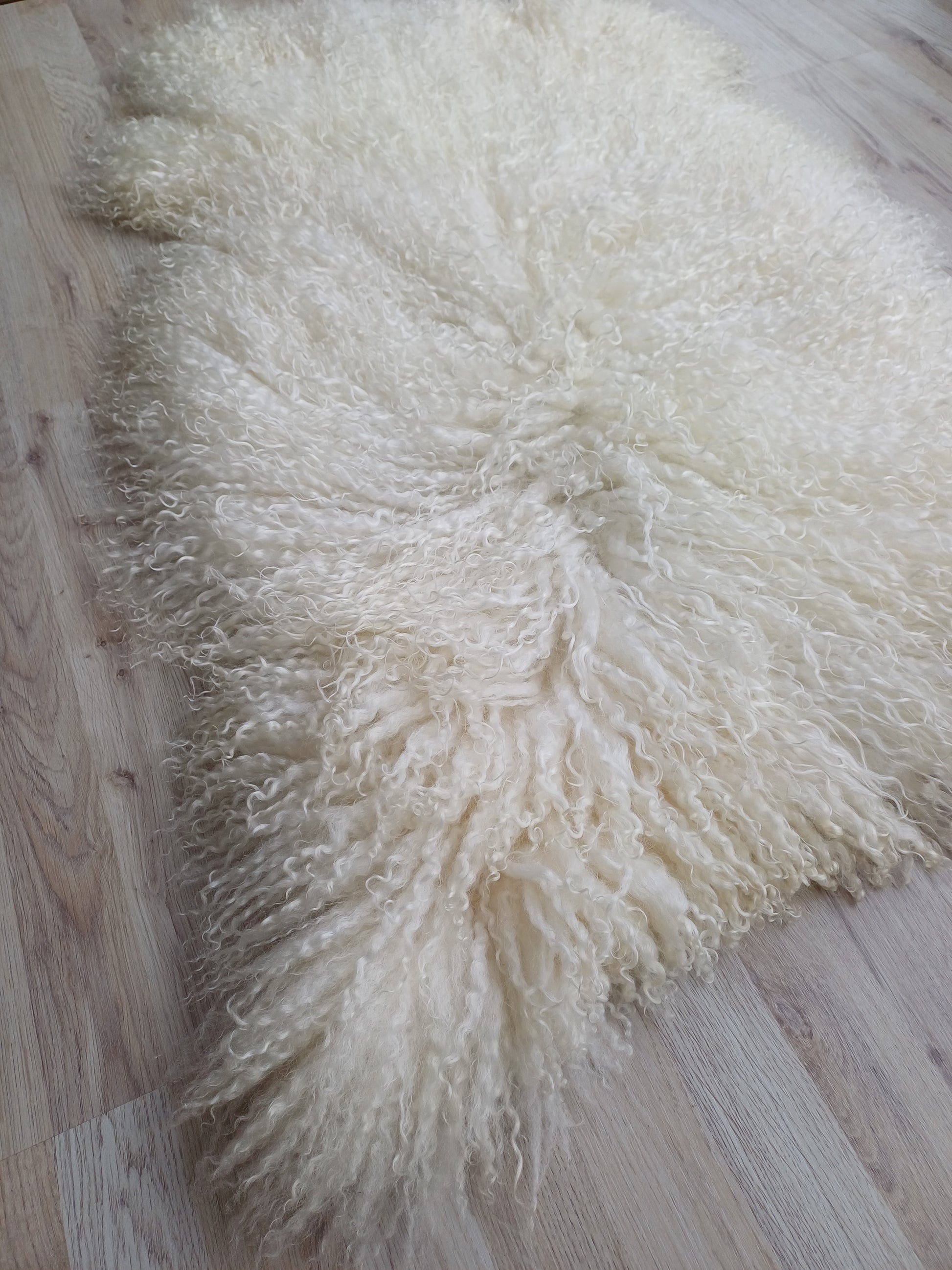Prachtige vacht van een Walliser Schwarznase, met heerlijk zachte lange wol. Dit is een dunnere vacht.