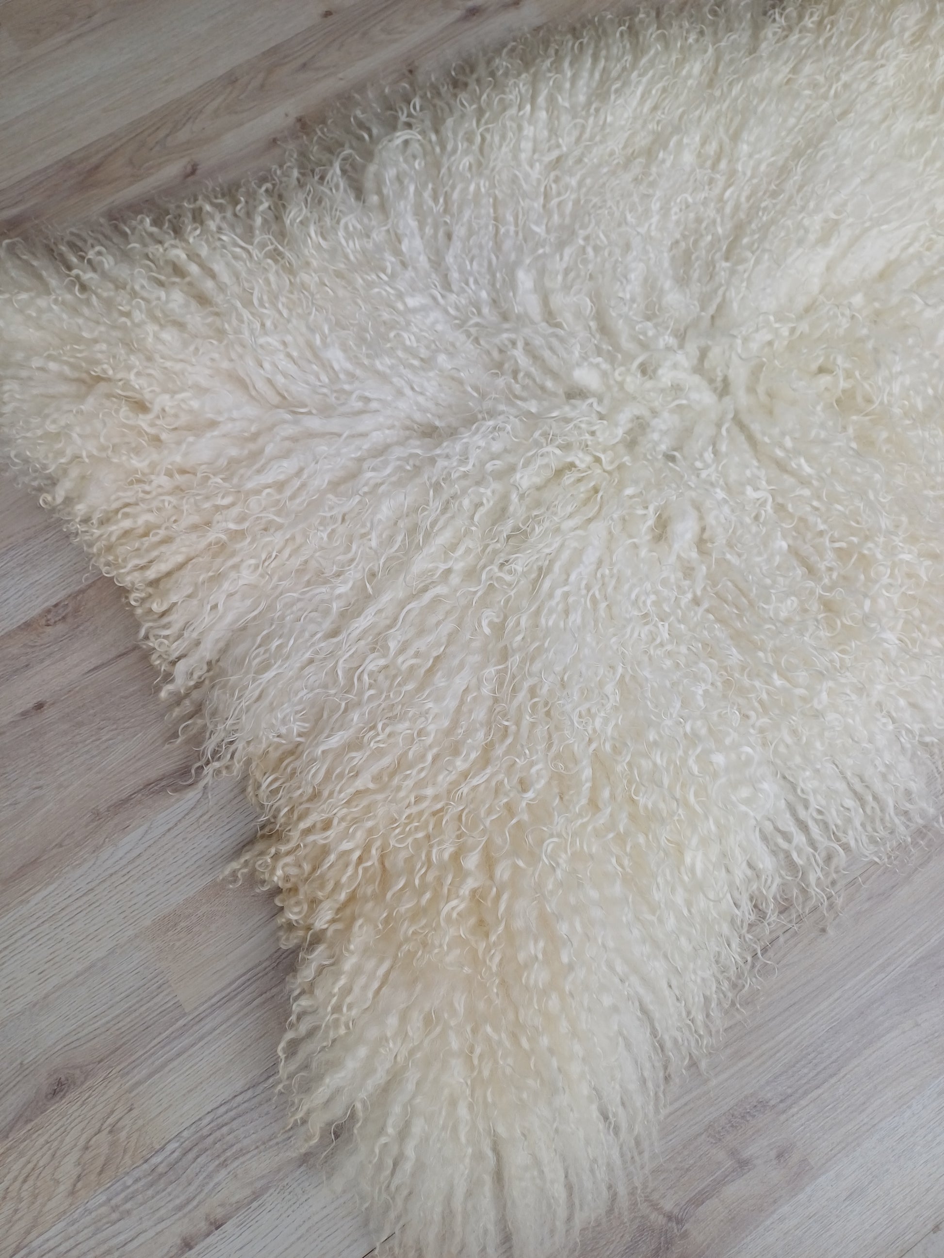 Leuk weetje is dat daaraan ook te zien is dat het een echte schapenvacht betreft. Namaak vachten verkleuren namelijk niet bij een andere lichtinval.