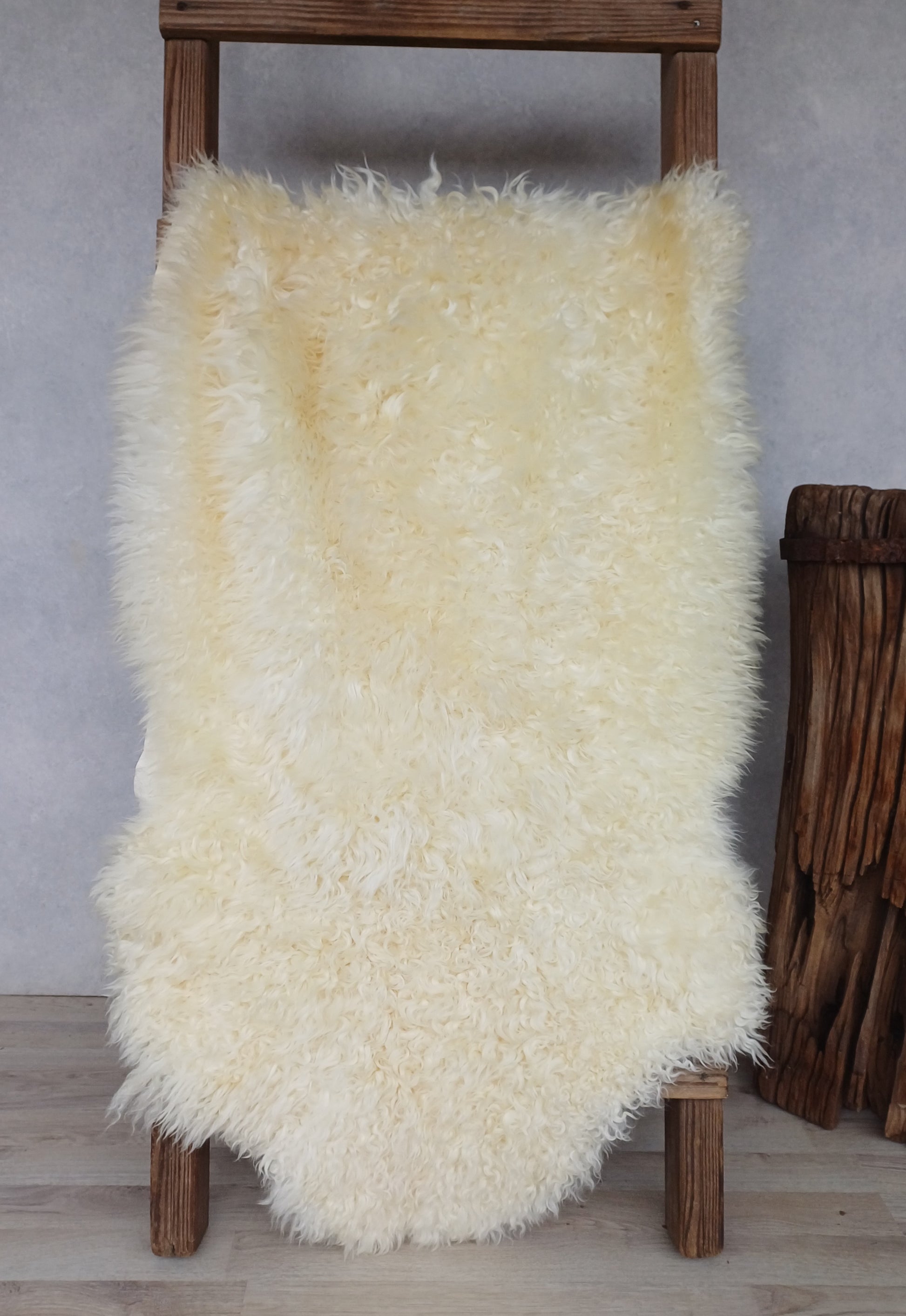 Prachtige vacht van een Walliser Schwarznase, met heerlijk zachte korte wol. Dit is een dunnere vacht.
