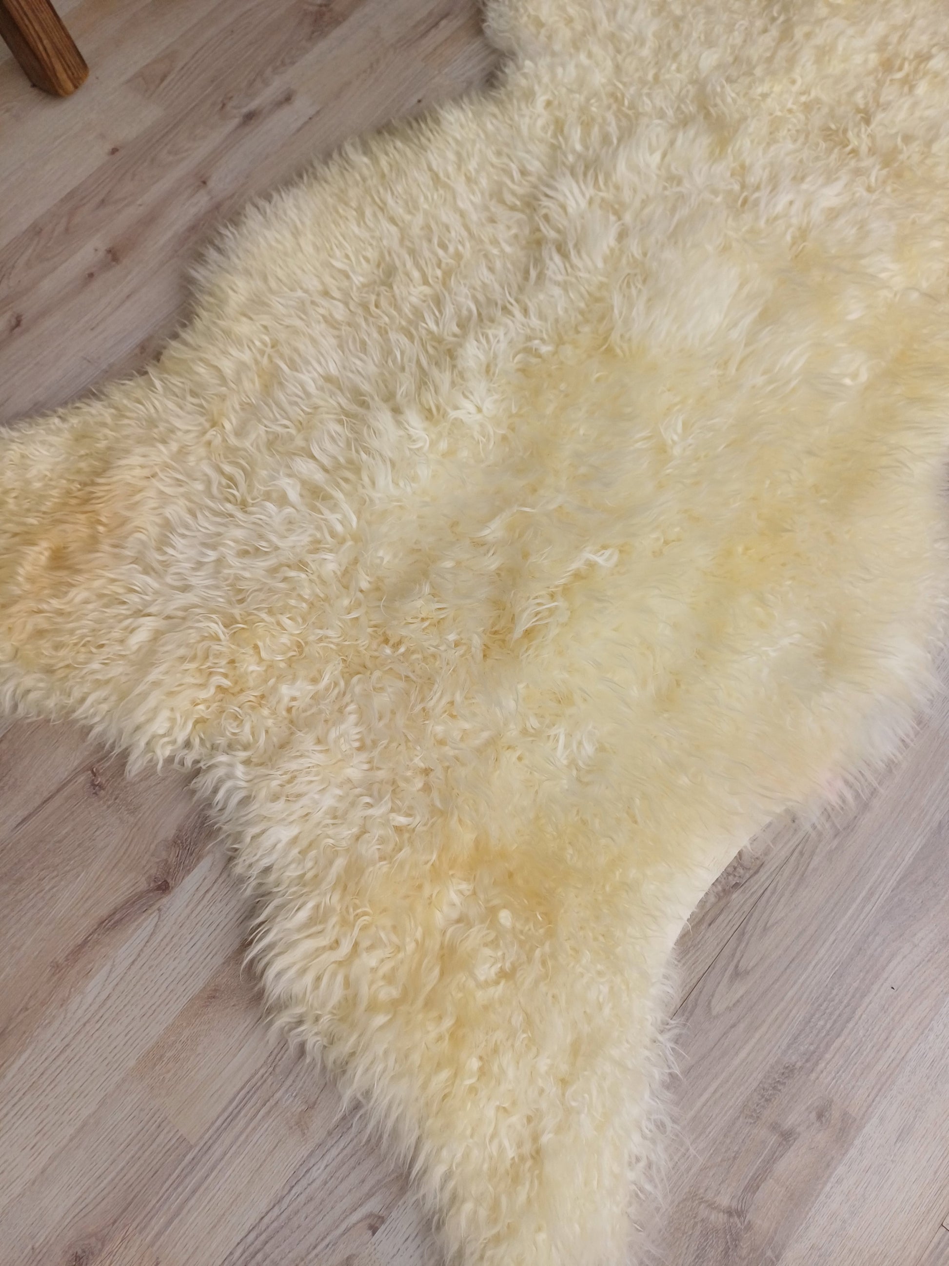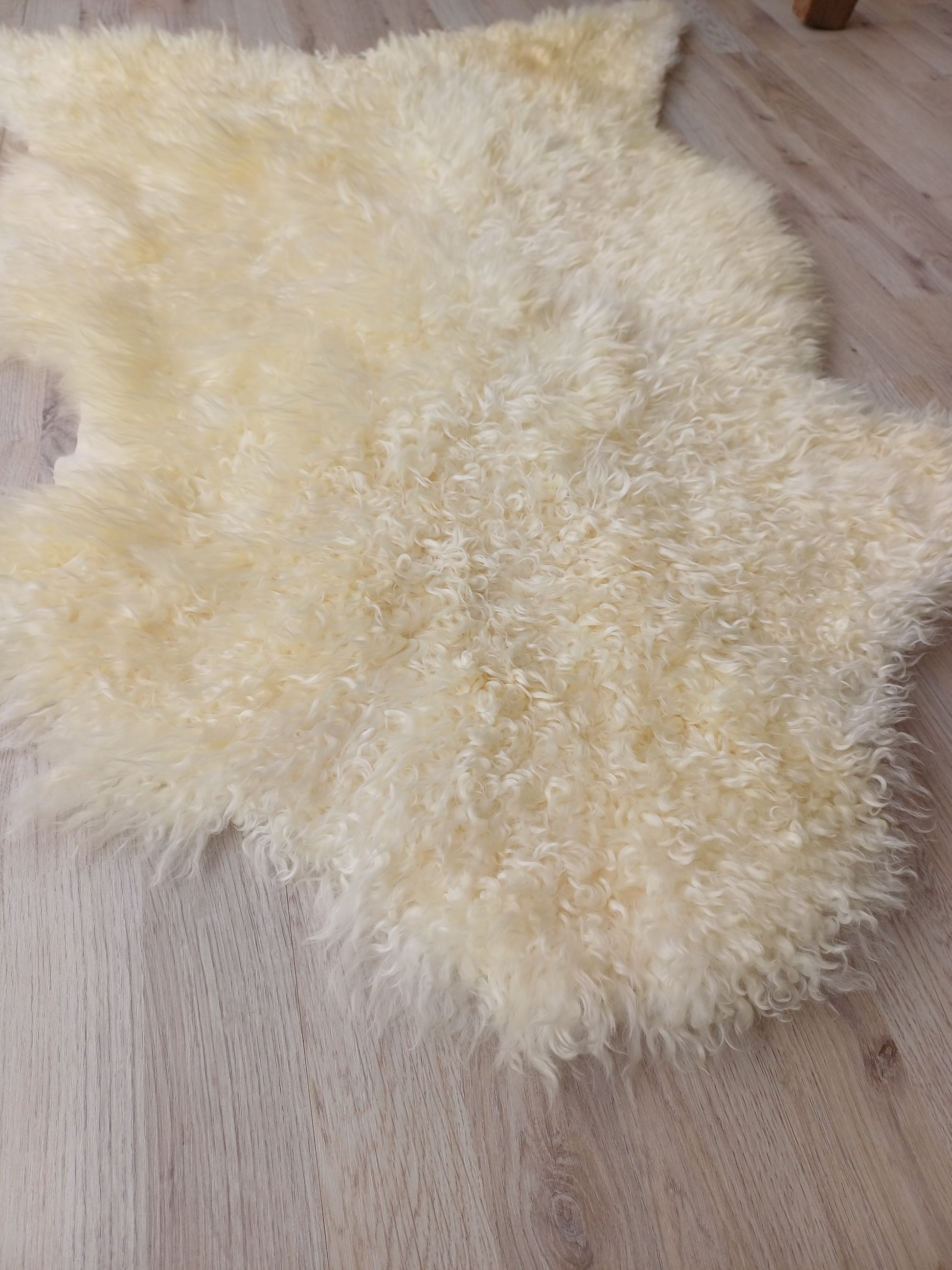 Leuk weetje is dat daaraan ook te zien is dat het een echte schapenvacht betreft. Namaak vachten verkleuren namelijk niet bij een andere lichtinval.