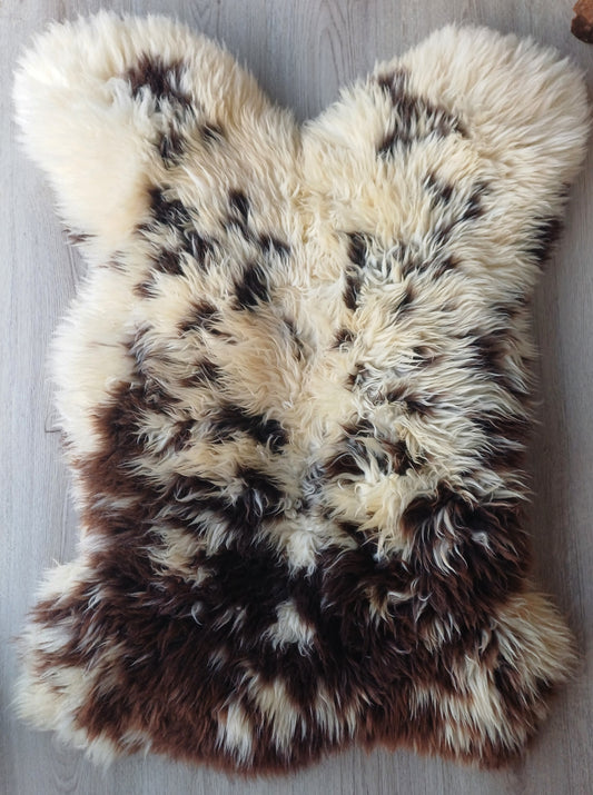 Ik wilde helemaal geen vacht kopen, maar deze mรณest ik hebben. Prachtig met die roodbruine vlek in het midden en ook wat roodbruine plukjes aan de kop kant. Ondanks de duidelijke foto's erg verrast door de schoonheid, onwerkelijke zachtheid en kwaliteit.